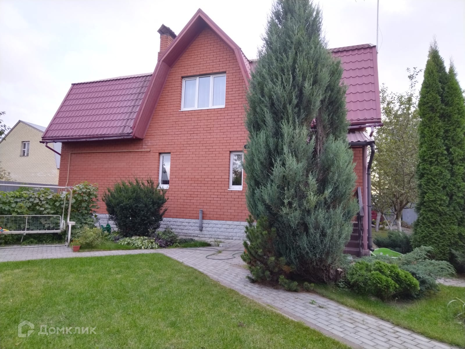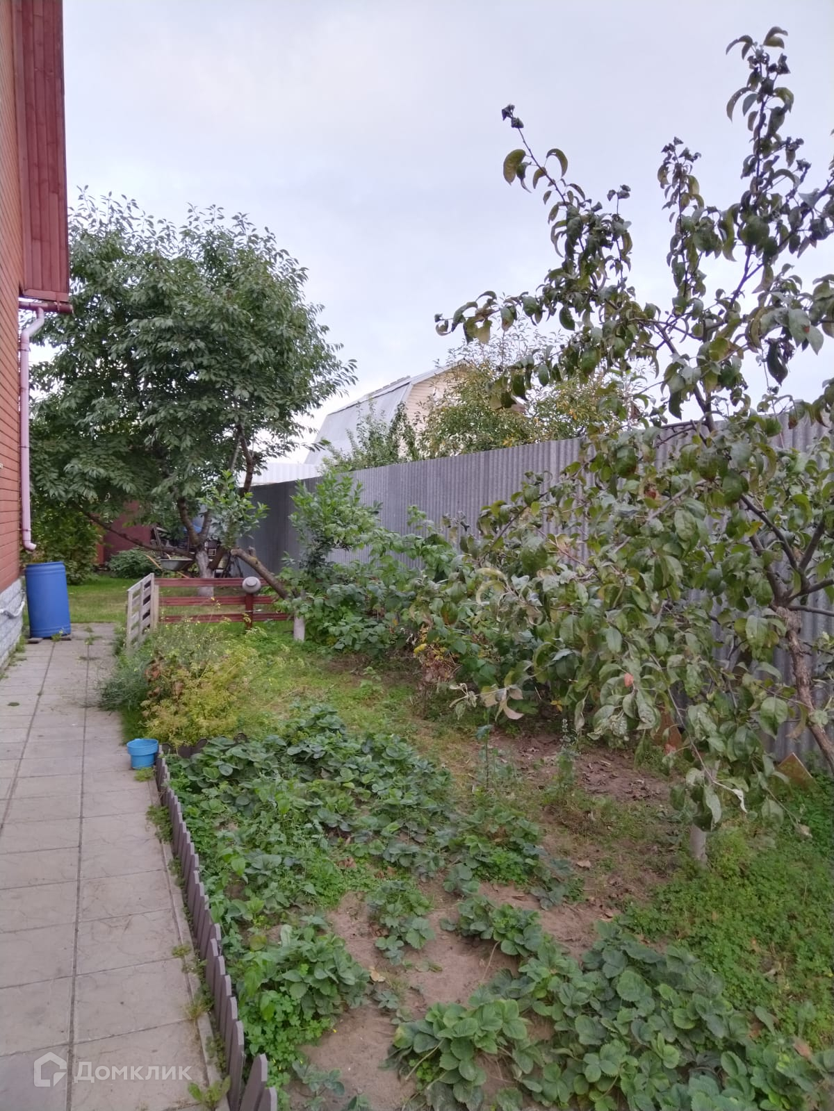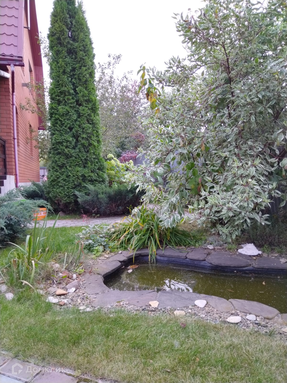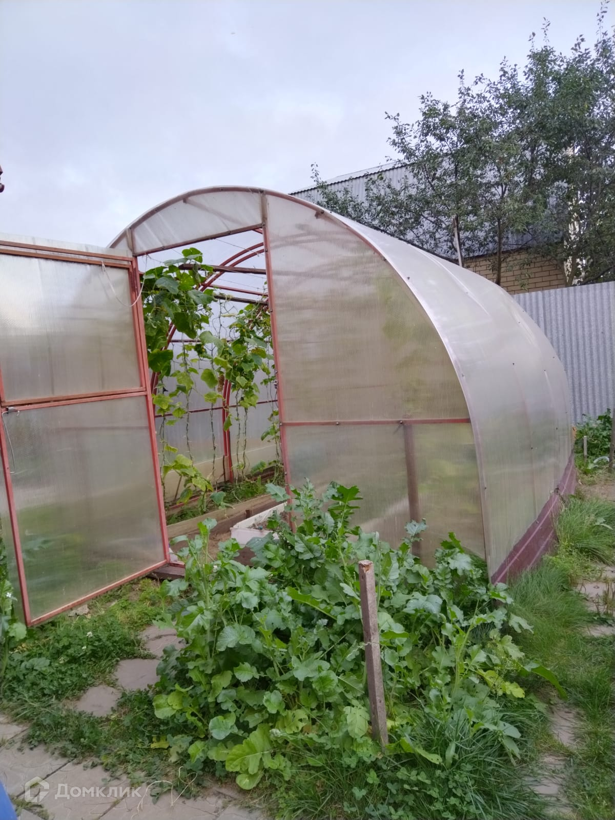 Облагороженный участок на 6.7 соток, огорожен забором. Есть парковочные места на два автомобиля. На участке имеется беседка с мангальной зоной, хоз.блок для хранения, две теплицы и оборудована система полива. Во дворе посажены плодовые деревья, декоративные растения и цветы, также имеется небольшой пруд.