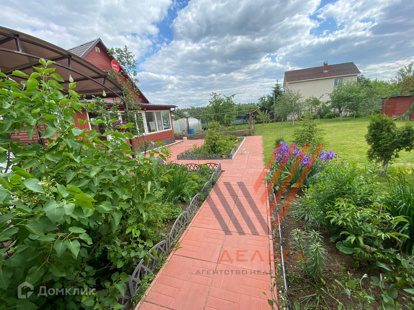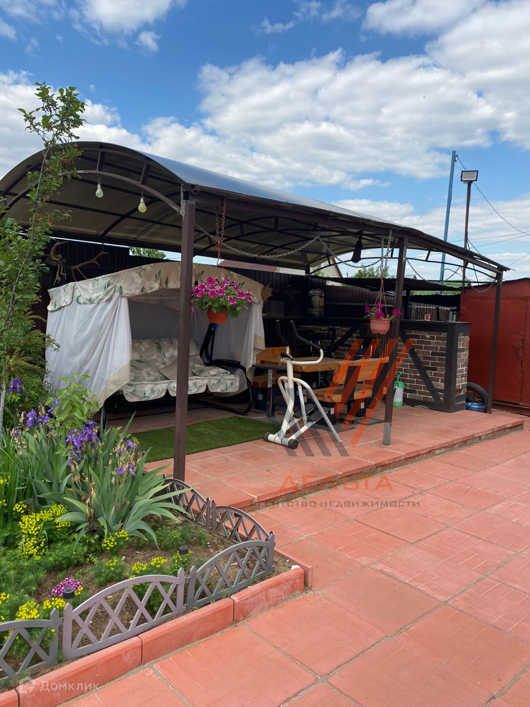 Дополнительно на участке: теплица, железный гараж, бытовка, беседка с зоной барбекю и кованным мангалом. Деревья: яблони, сливы, вишни, декоративные туи, ёлки, клубника.