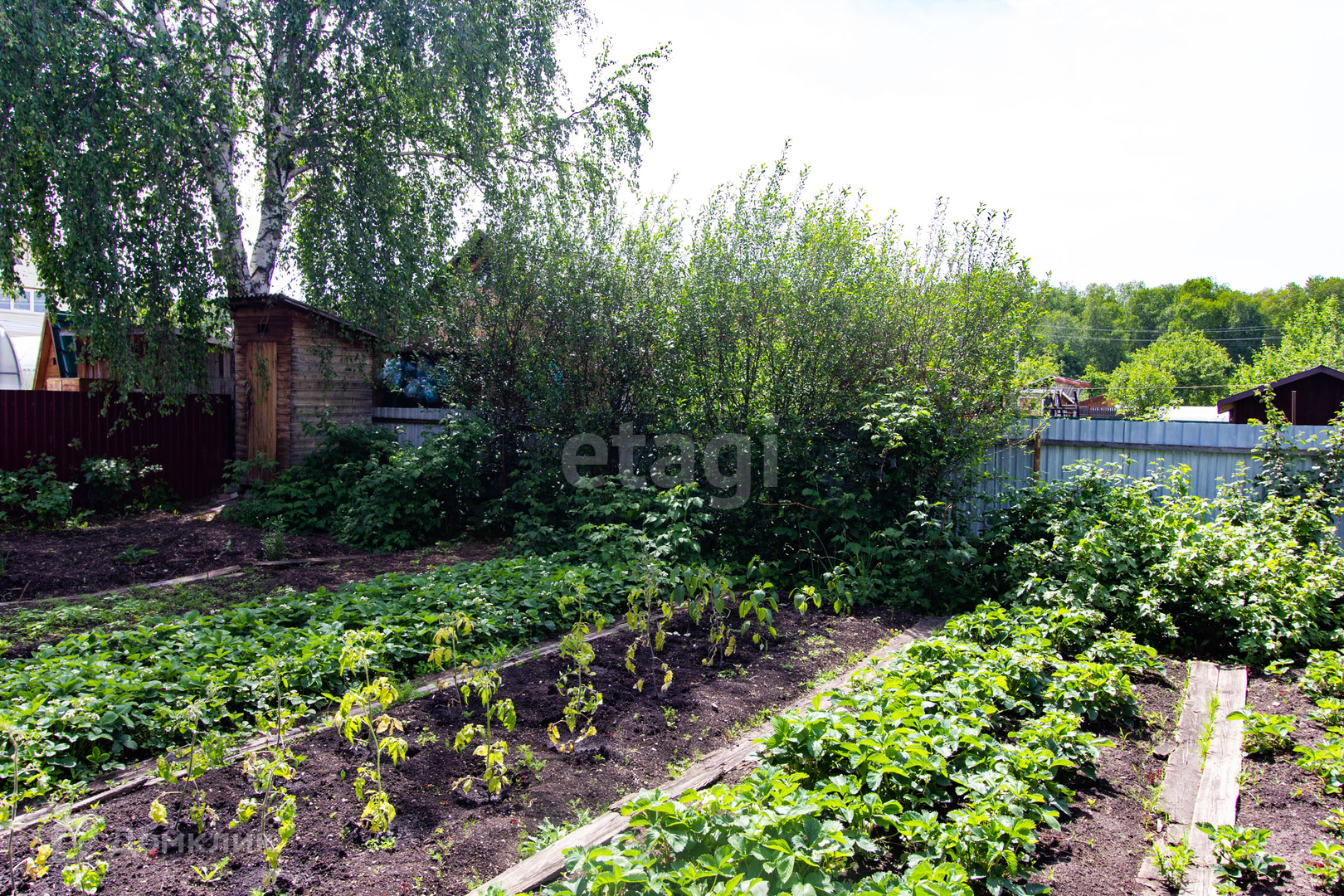 На участке расположены два дома, хоз.блок, душ, санузел, парковка на 2 автомобиля. Участок ухоженный, есть плодовые насаждения, деревья. Насаждения: яблоня, вишня, жимолость, смородина, рябина, черноплодка, виктория.
