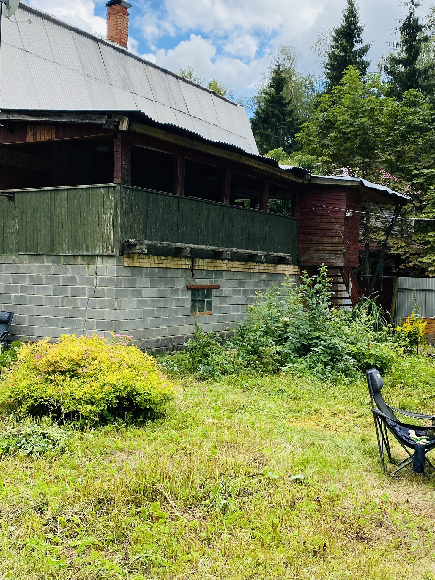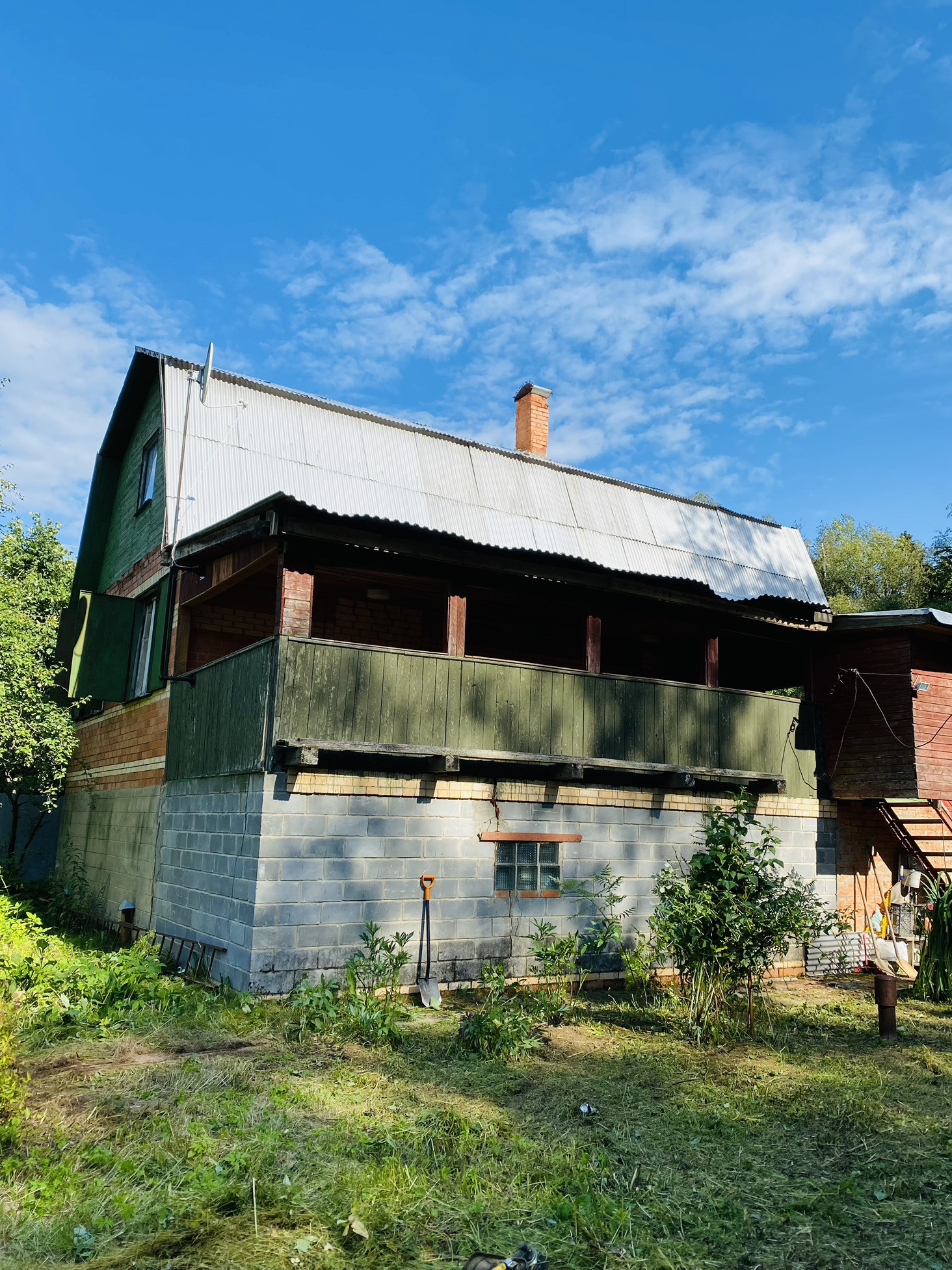 Летний дом площадью 185,6 кВ. м. ( на участке 8 соток) по документам 6 соток. На границе с лесом, соседи только с лева.Имеется отдельная собственная парковка рядом с участком. Дом три этажа. 1- две комнаты, 2- две комнаты, 3- одна большая с балконом. Телевидение-тарелка НТВ. Дому также необходим  ремонт. Есть глубокая скважина. На территории стоит хозблок. Территория снт огорожена, имеются сторожа. Рядом с СНТ находится автобусная остановка. Удобный выезд на ярославское шоссе.