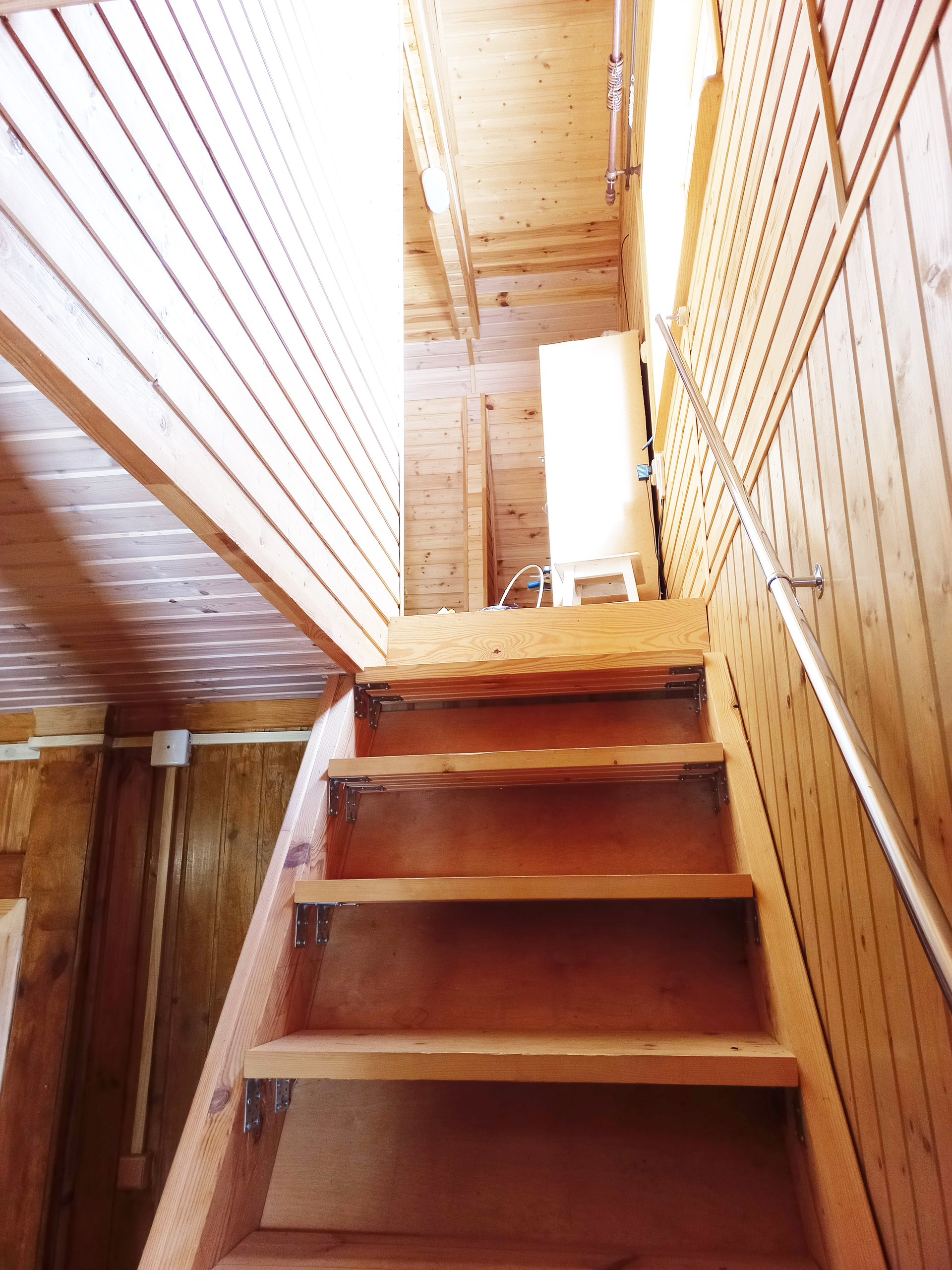 4 комнаты: гостиная-кухня и спальня на 1-м этаже, 2 просторные спальни с высокими потолками и небольшой холл на 2-м этаже.