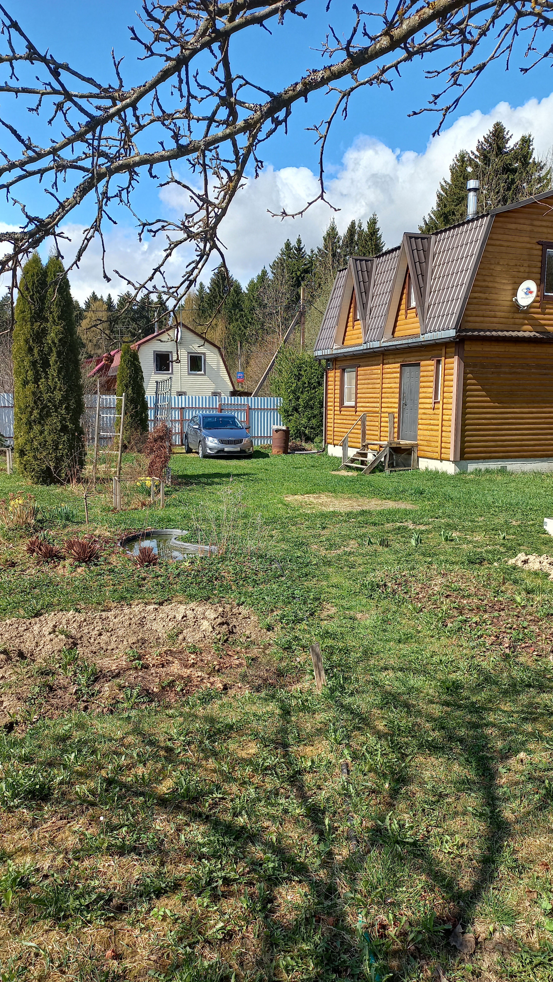 Забор на 3 стороны - профлист, 1 сторона - сетка. Есть парковочное место на участке и перед воротами.
