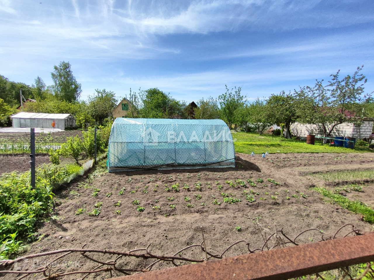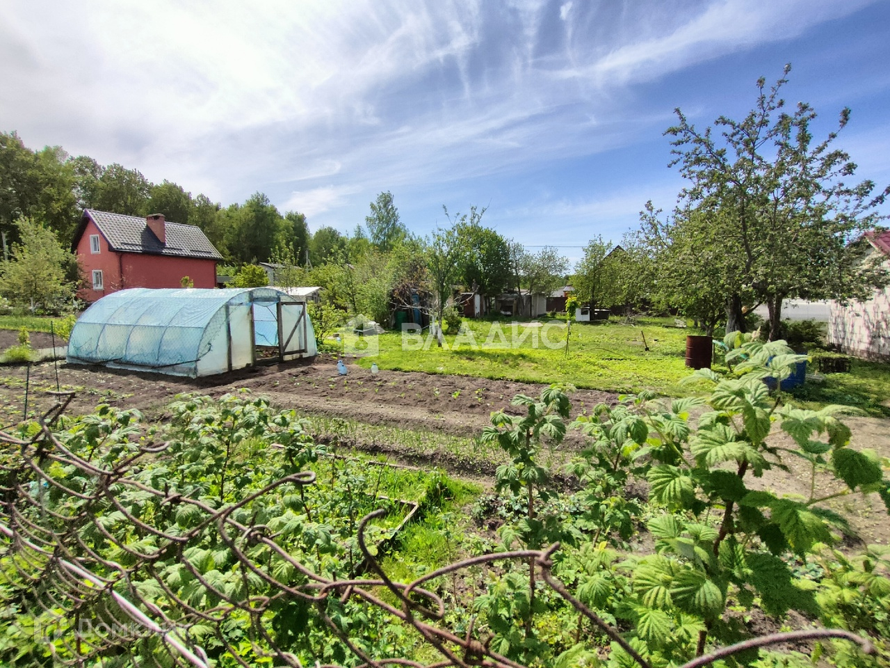 На участке имеется: колодец, теплица, много насаждений- малина, яблоня и много другого, обработанная и плодородная земля. Хорошие соседи.