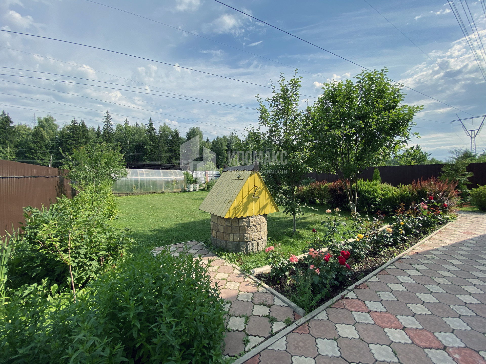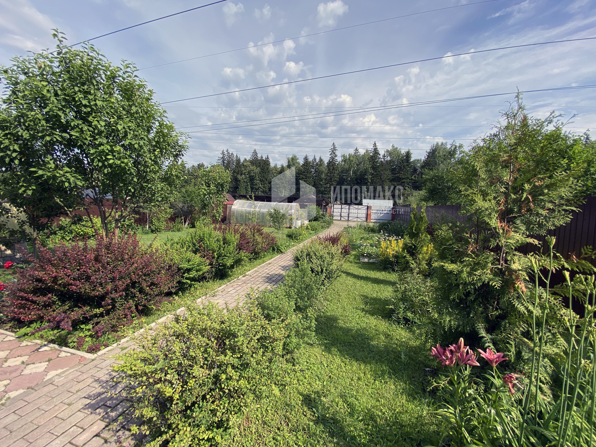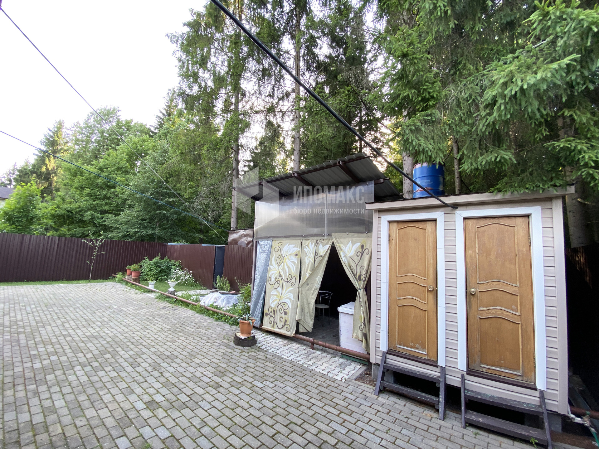 Построен навес на 2 автомобиля с мастерской, распашные ворота, парковочные места и дорожки на участке выложены брусчаткой.
