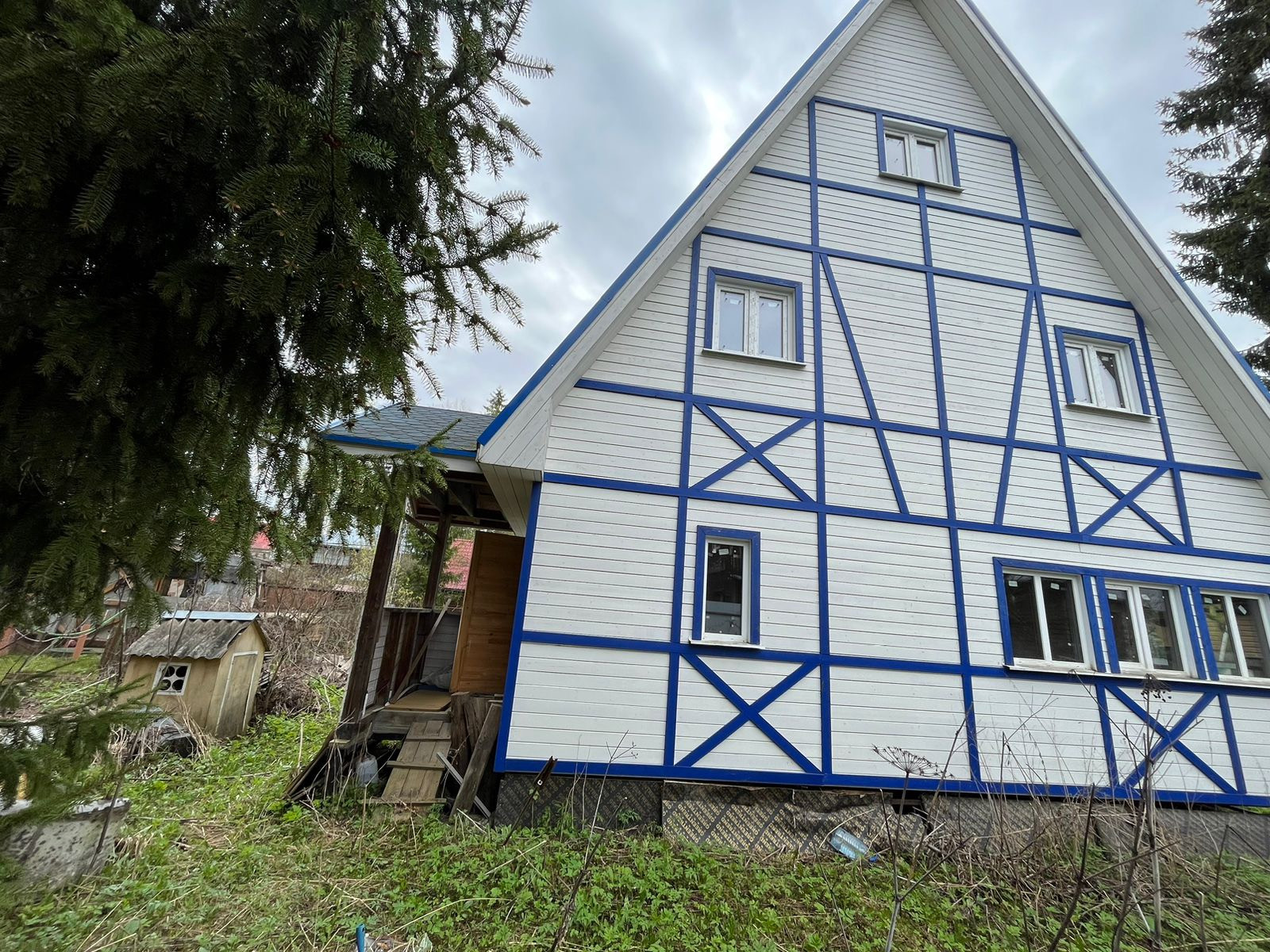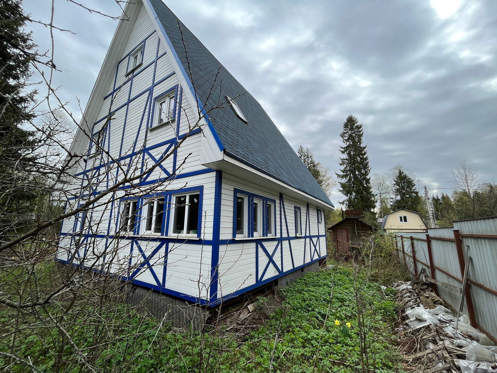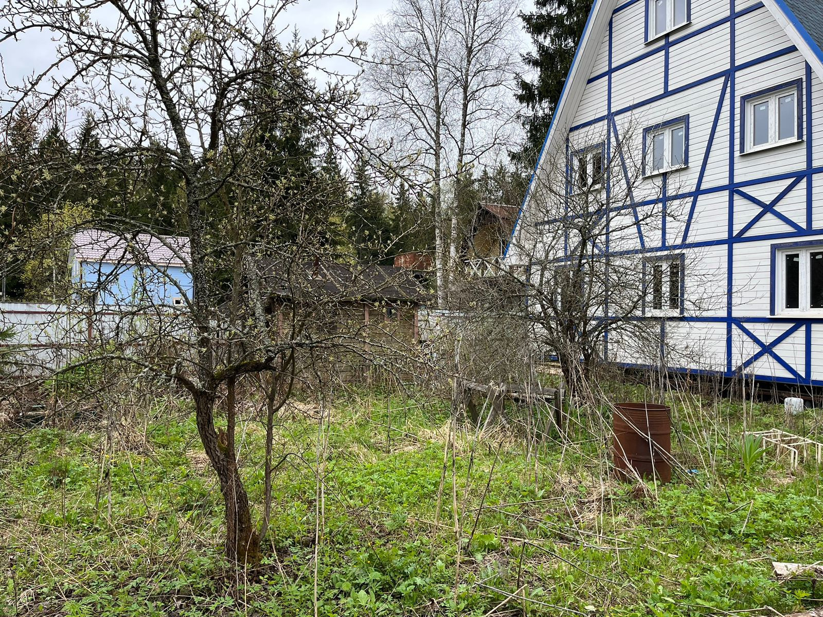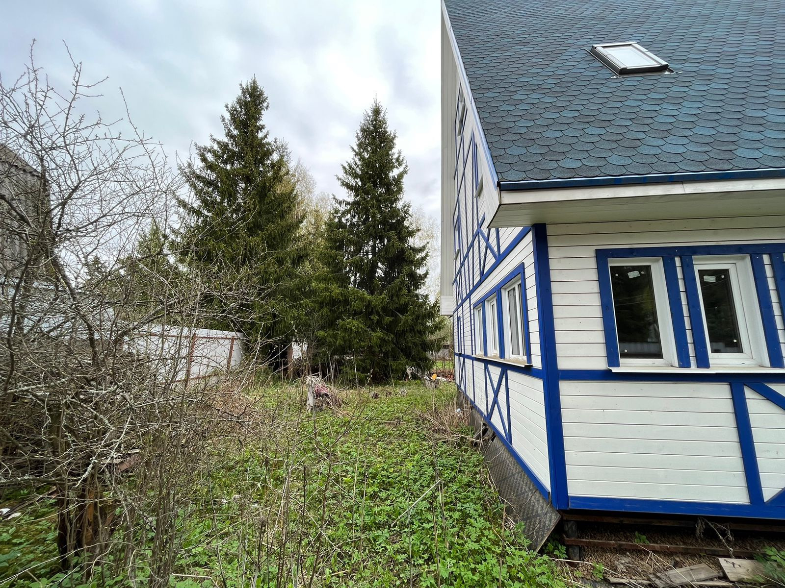 На 6-ти сотках построен дом каркас, строился по Финской технологии, первый этаж - 8х8 кухня-гостиная и сан/узел, второй этаж 7х7 с 3-мя спальнями, 3-ий этаж 5х5 мансарда. все требуется доделать и воплотить фантазии в реальность. Газ по границе, ожидается в 24-25 году, по вашему желанию будет подведен к участку.
