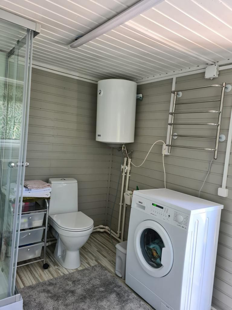 Проведены и подключены все необходимые для комфортного проживания коммуникации: электричество, скважина 42 м. с погружным насосом, установлена система фильтрации Аквафор с экономичным расходом соли (примерно мешок в месяц), водопровод летний, неглубокого залегания, канализация септик Аквалос, бойлеры для горячей воды на кухне и в санузле.