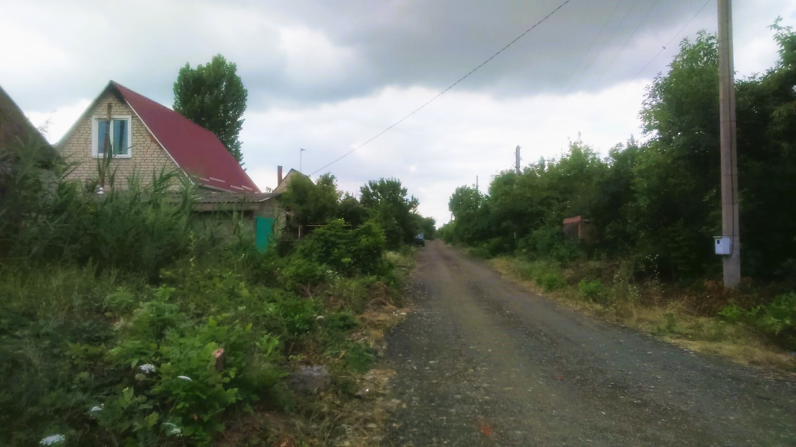 На улице есть электричество, дорога осыпана щебнем.