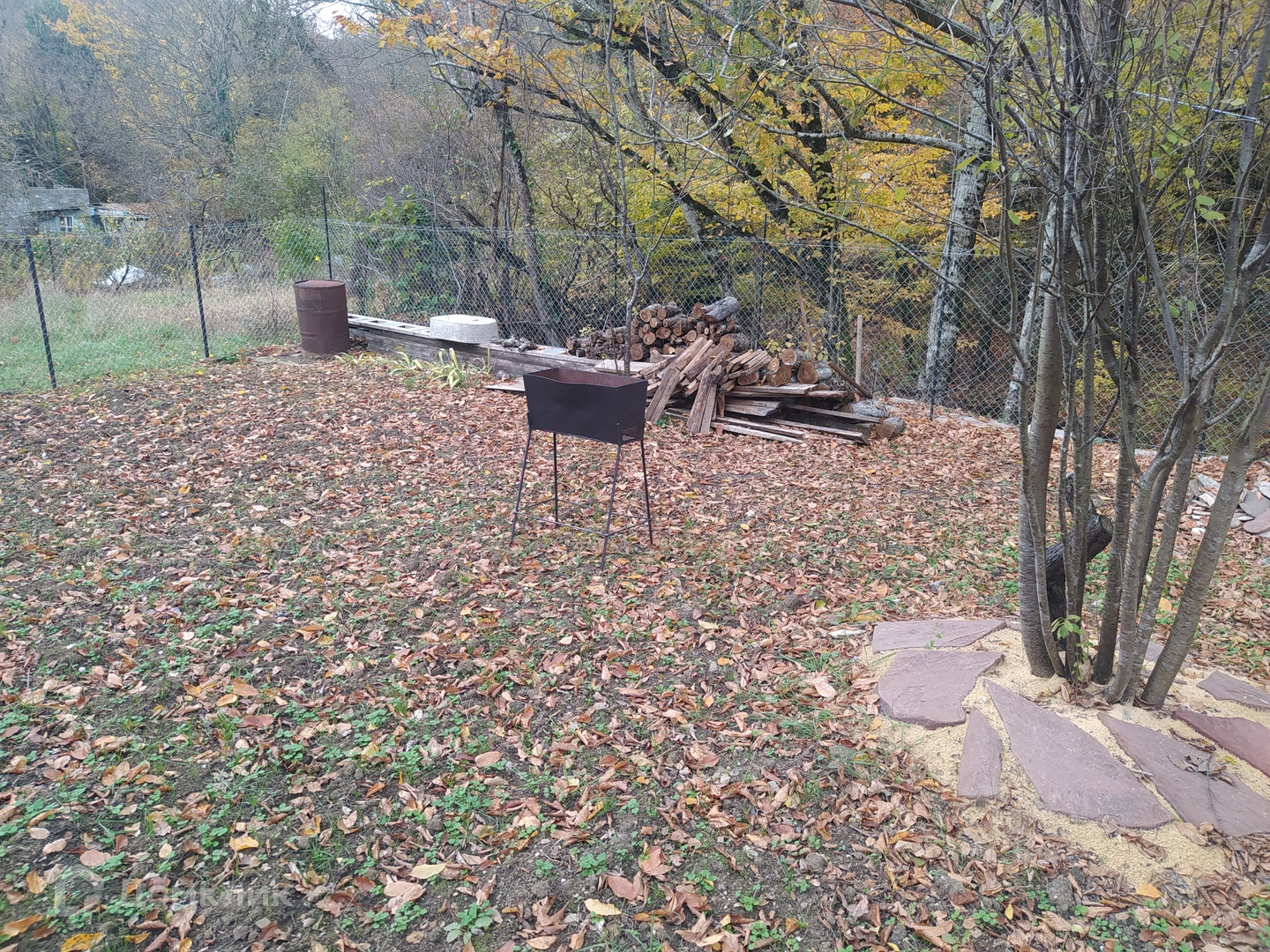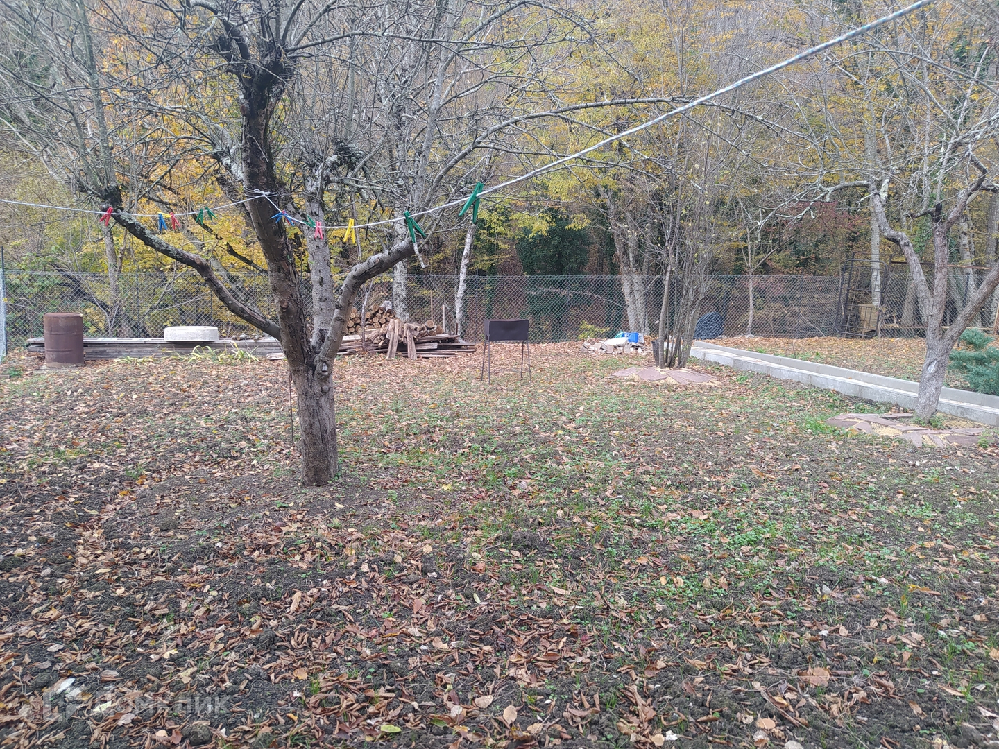 На участке имеется баня, скважина, септик. Электричество заведено в дом. Участок разработан, имеются различные плодовые деревья. Задняя часть участка примыкает к ручью и лесу, поэтому соседи только с двух сторон.