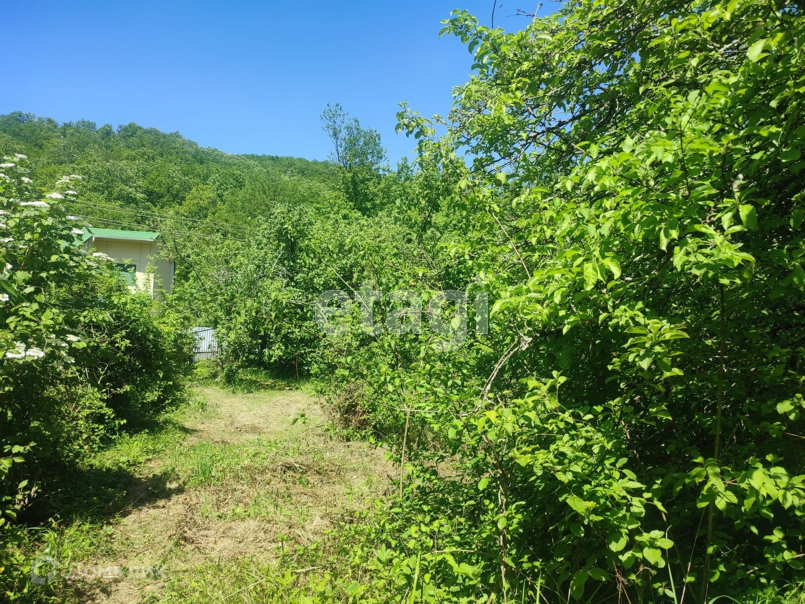 Продается земельный участок 8 соток в живописном месте, в окружении гор по прямой грунтовой дороге ( 4км от трассы) . Место экологически идеальное, чистейший воздух, пение птиц, много зелени, лес, грибные места . В глубине участка расположена дача, внутри отделка из дерева,утепление,отштукатурен,но нужен ремонт,невысокая цена участка предполагает ремонт по вашему вкусу.В доме есть 2 спальни, кухня,комната  с отдельным входом,возможность надстроить 2 этаж. Электричество заведено в дом,печное отопление, санузел отдельно,есть колодец с питьевой водой ,для полива теплой водой есть емкость. Идеальное решение для любителей прохлады в тени гор в летний зной .Есть место для бани,бассейна,зоны отдыха,огородика Номер в базе: 416750 .