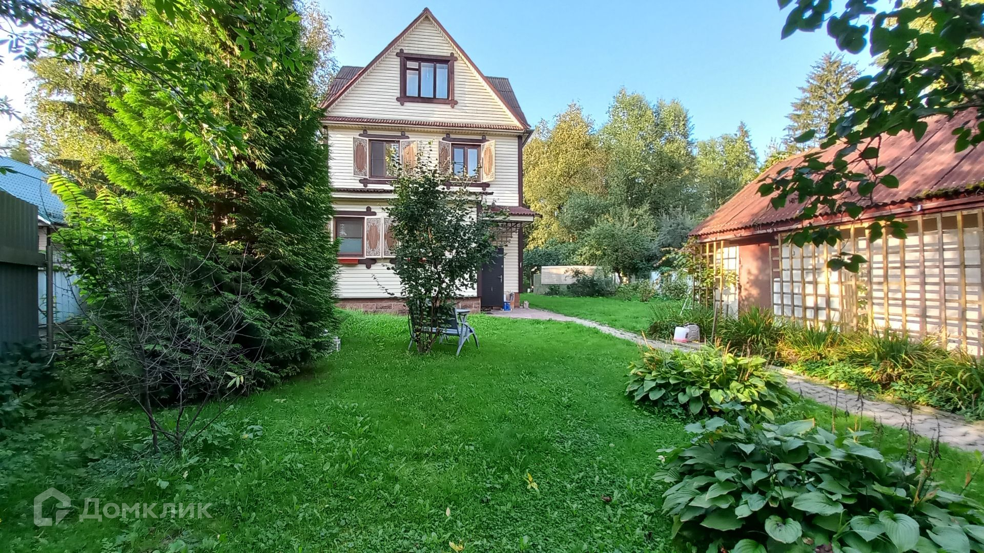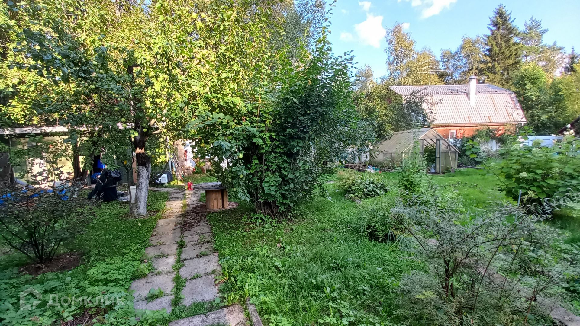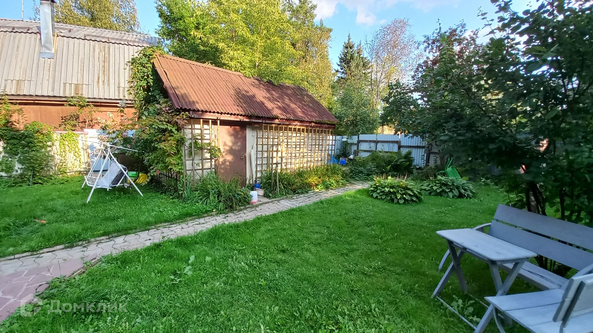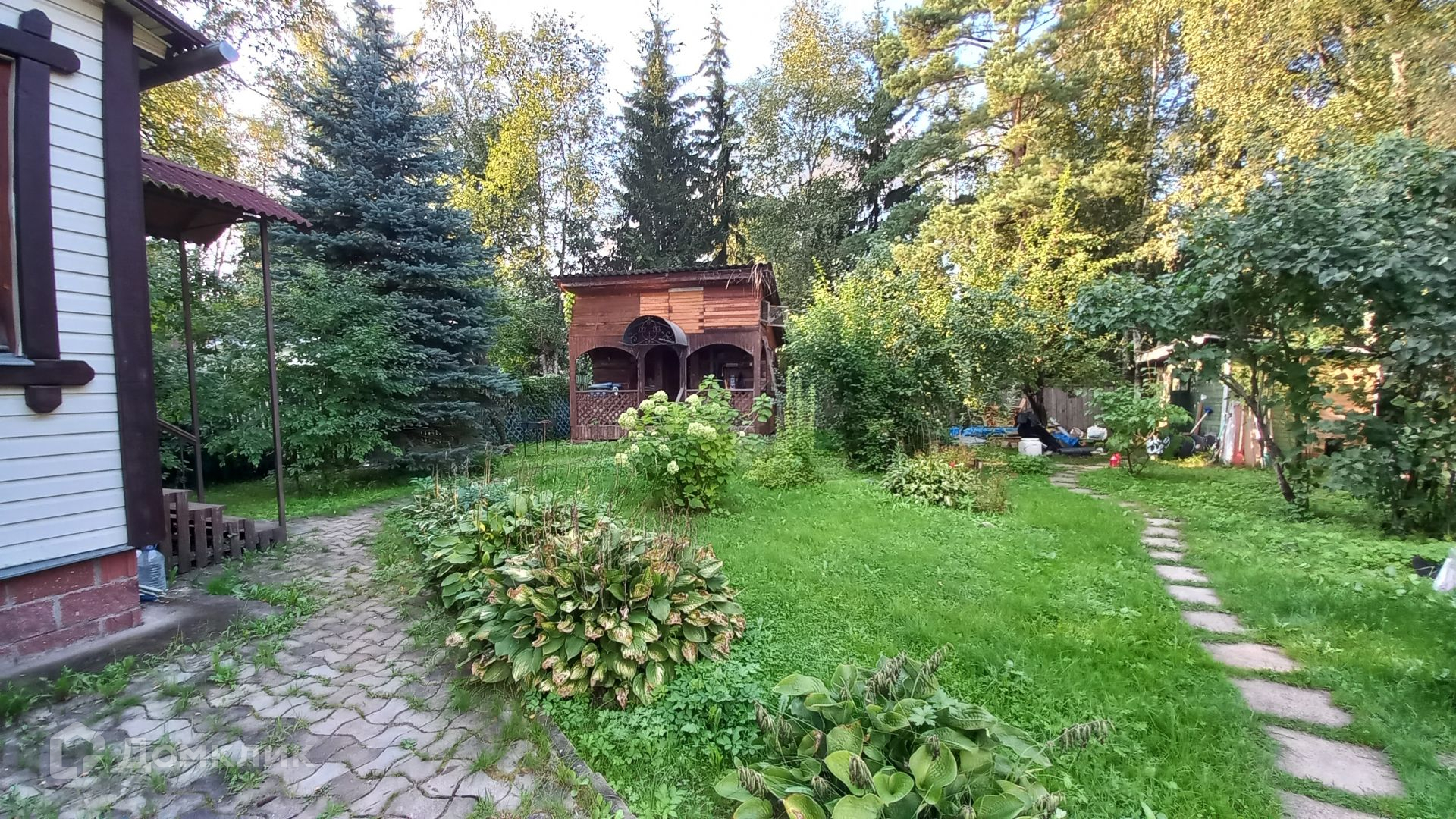 Площадь участка составляет 9,2 сотки. Участок ровный, огорожен по всему периметру, зеленый, на участке растут плодовые деревья, жимолость, ягоды, кустарники. Так же на участке расположен гараж, летняя кухня и хозблок.