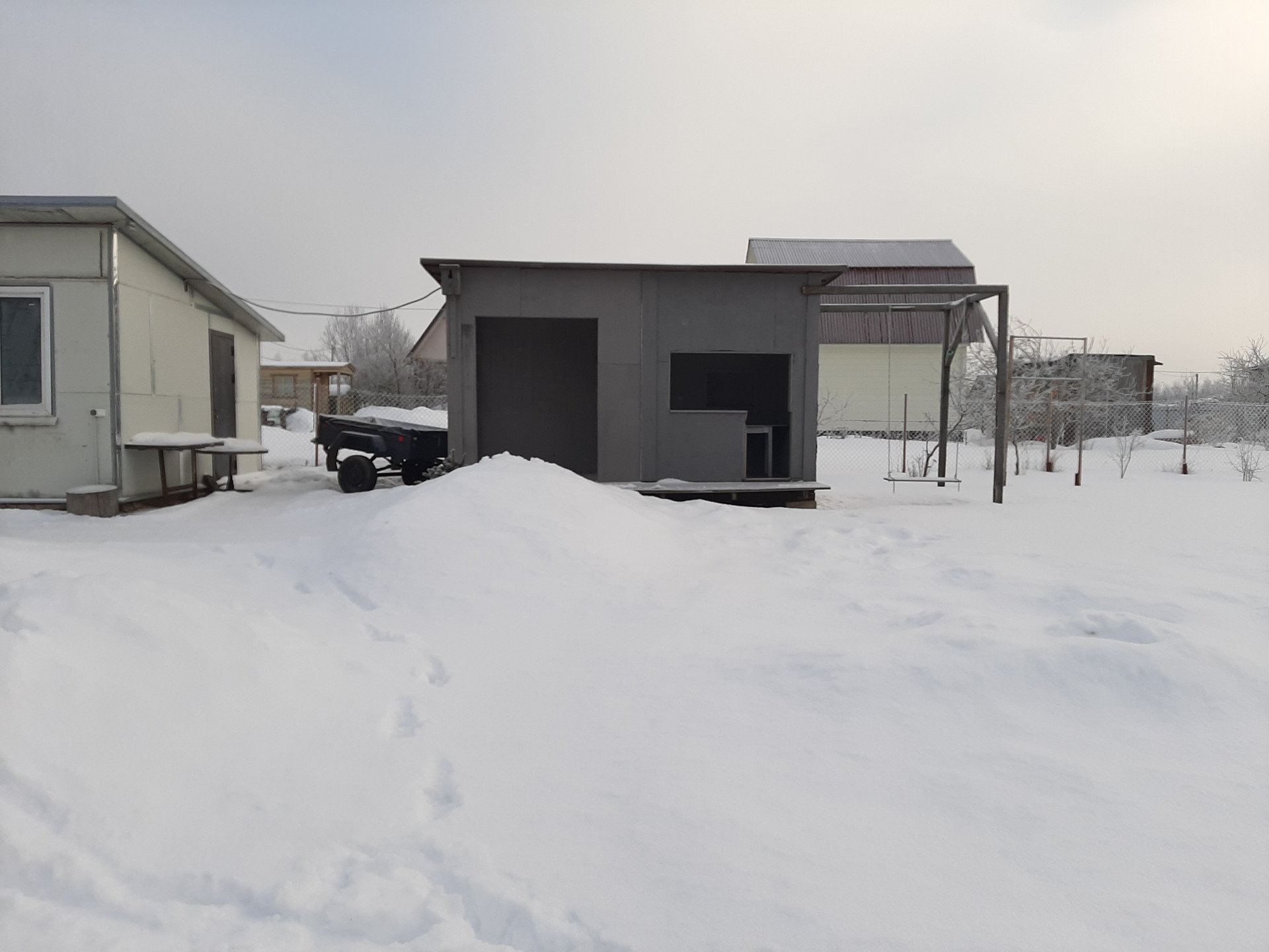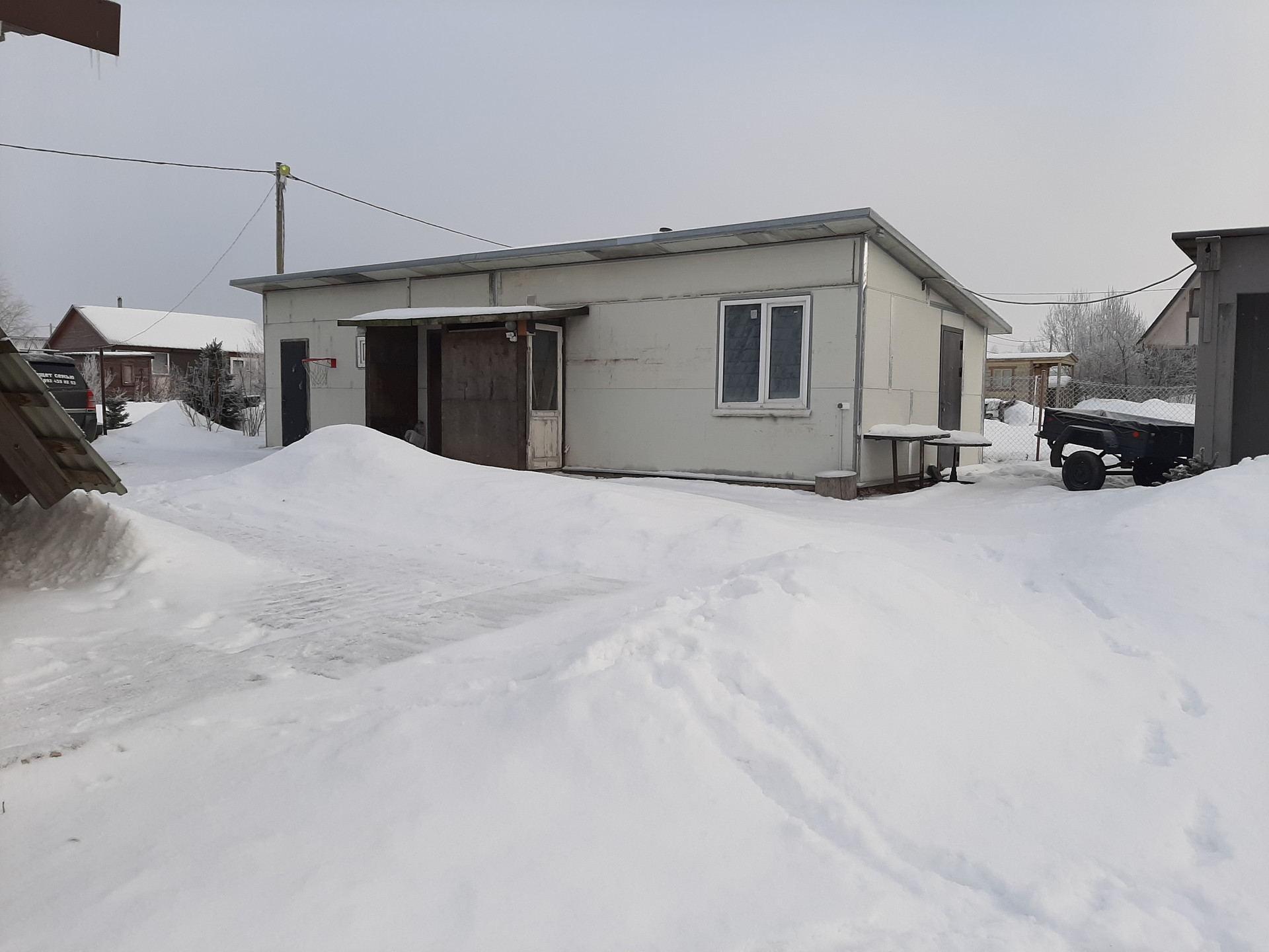 В Хозблоке ( сэндвич панели 100мм (вата), пол - плита 100мм, запланирована баня-сауна.(вода и свет заведены)