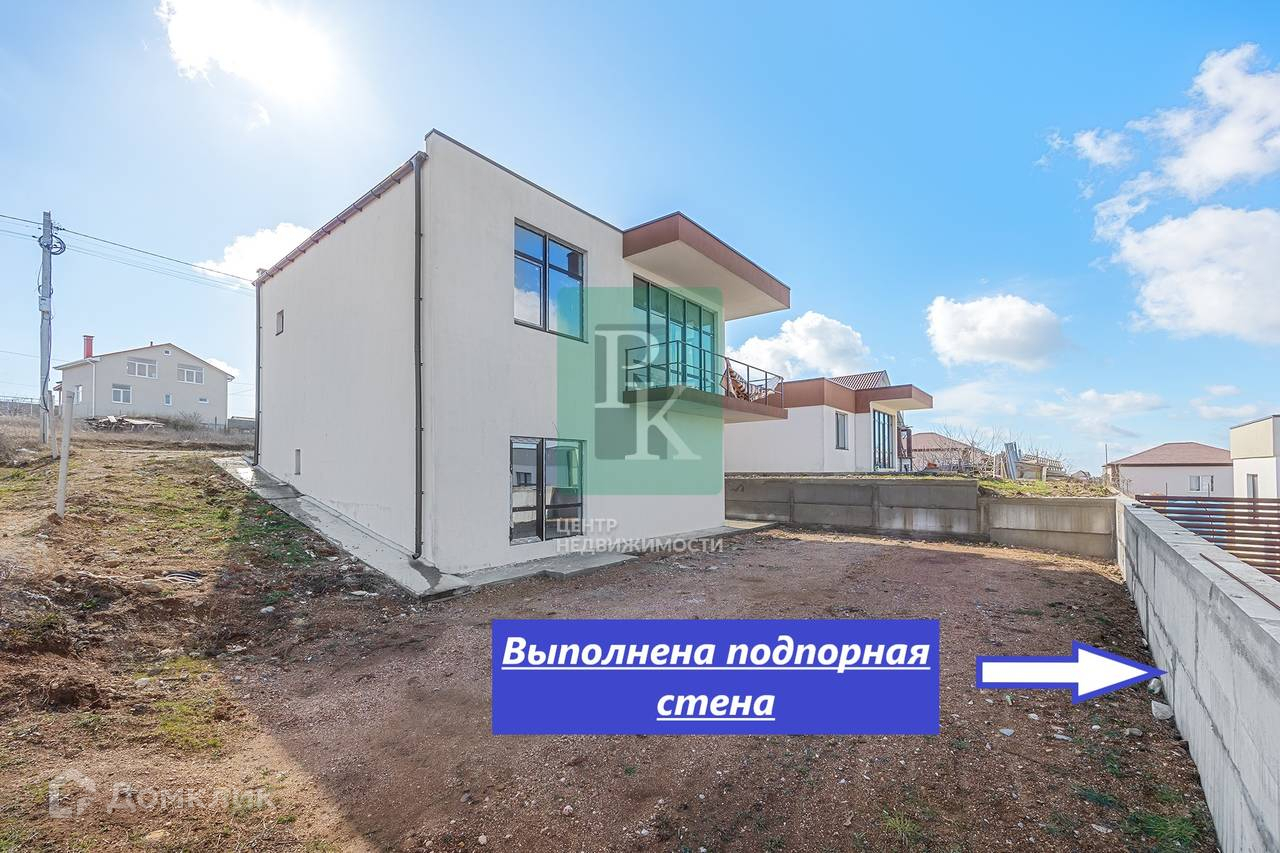 Дом 174 м² на участке 4 сотки, двухэтажный. Расположен в г. Севастополь, Балаклавский район, СТ “Поиск”. Коммуникации: электричество, водоснабжение, отопление, канализация.