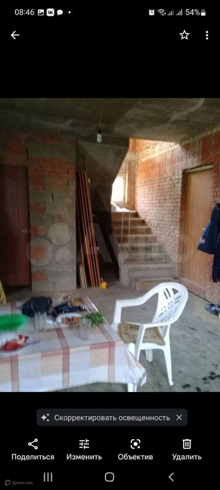 Без отделки, строительный материал имеется. Газ проходит рядом с участком 70 см. Имеется небольшая скважина, септик на 4.5куб.