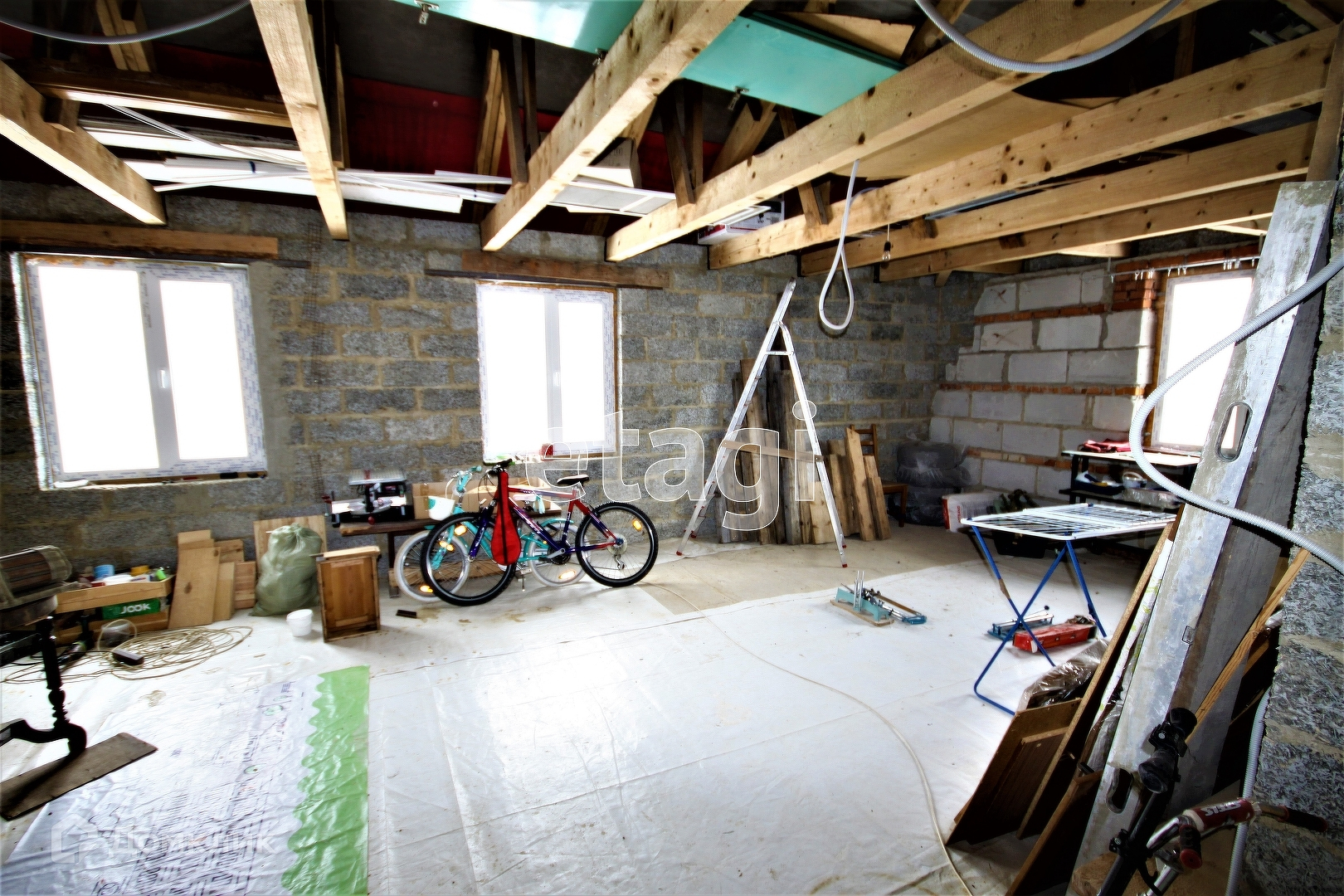 На втором этаже находятся просторные три спальни (возможна четвертая при установке перегородки), санузел, гардеробная. В доме есть подвал площадью 70 кв.м, при высоте потолка 2 м. и мансарда площадью 80кв.м. Межэтажные перекрытия - ж\б. Стены – кирпич, арболит. Фальцевая кровля.