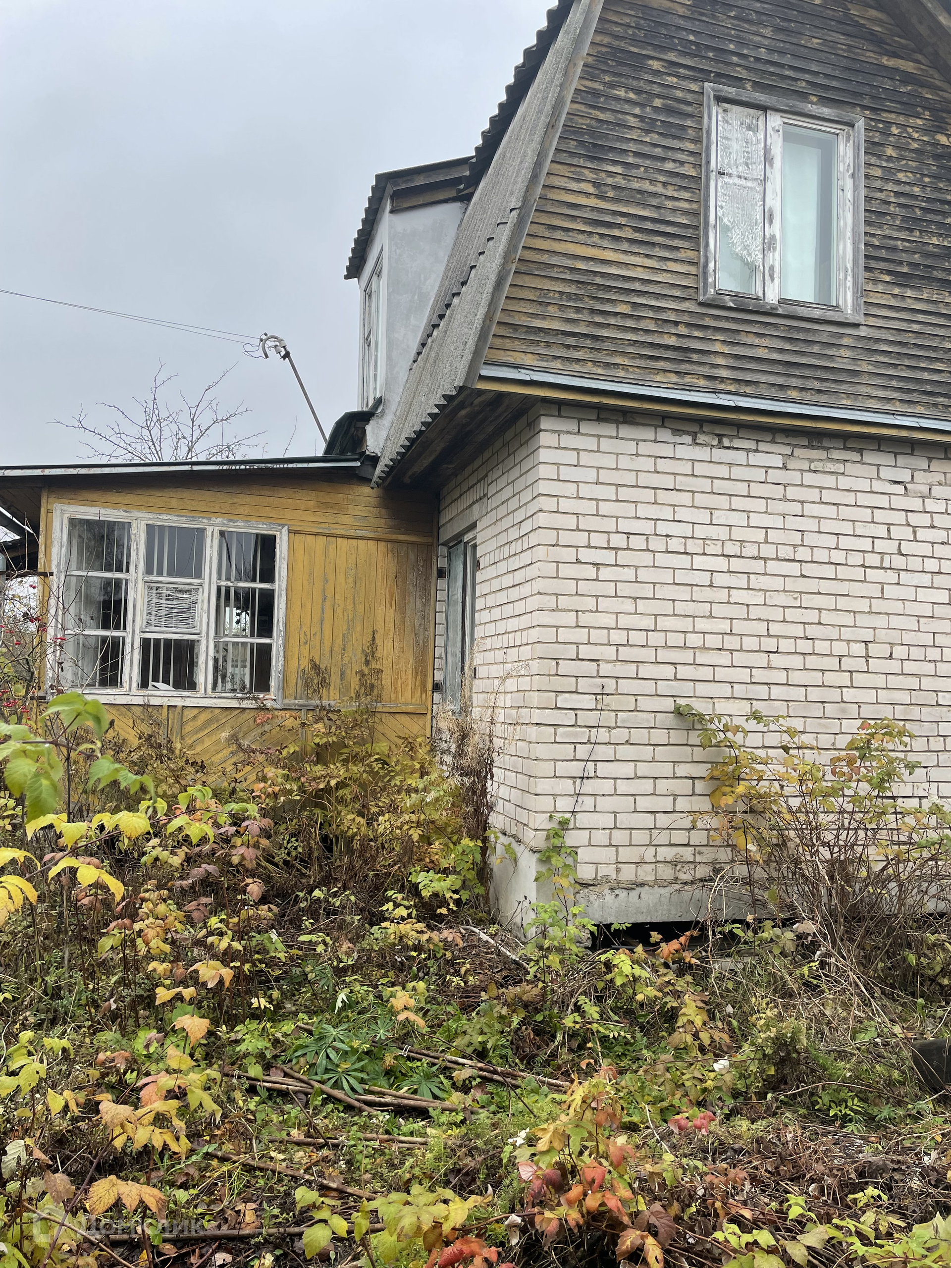 Первый этаж кирпичный (3,150х5,550) с печкой, надстроен второй этаж деревянный и веранда с кухней. Внутри дом обшит вагонкой. Требуется ремонт.
