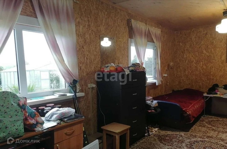 При строительстве дома использовался материал: осб плита с утеплителем. Снаружи дом обшит сайдингом, окна пластиковые, входная дверь металлическая. Современный забор с калиткой и воротами для заезда машины.