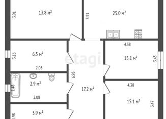 Продается Коттедж в районе Казарово, в 15 минутах от центра Тюмени! Участок 4,2 соток, дом 109 кв метра 3 отдельные комнаты: Гостинная -25,14 кв.м., 2 спальни по 15 кв м., кухня -13,9 кв. м., ванная 6,5 кв метров, туалет 3кв.м., котельная 4,1кв.м. коридор 17,1 кв.м. Материалы: керамзитоблок, утеплитель пенопласт, фасад-брылинский кирпич, фундамент-заливна... |