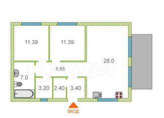 Общая площадь: 55 м2