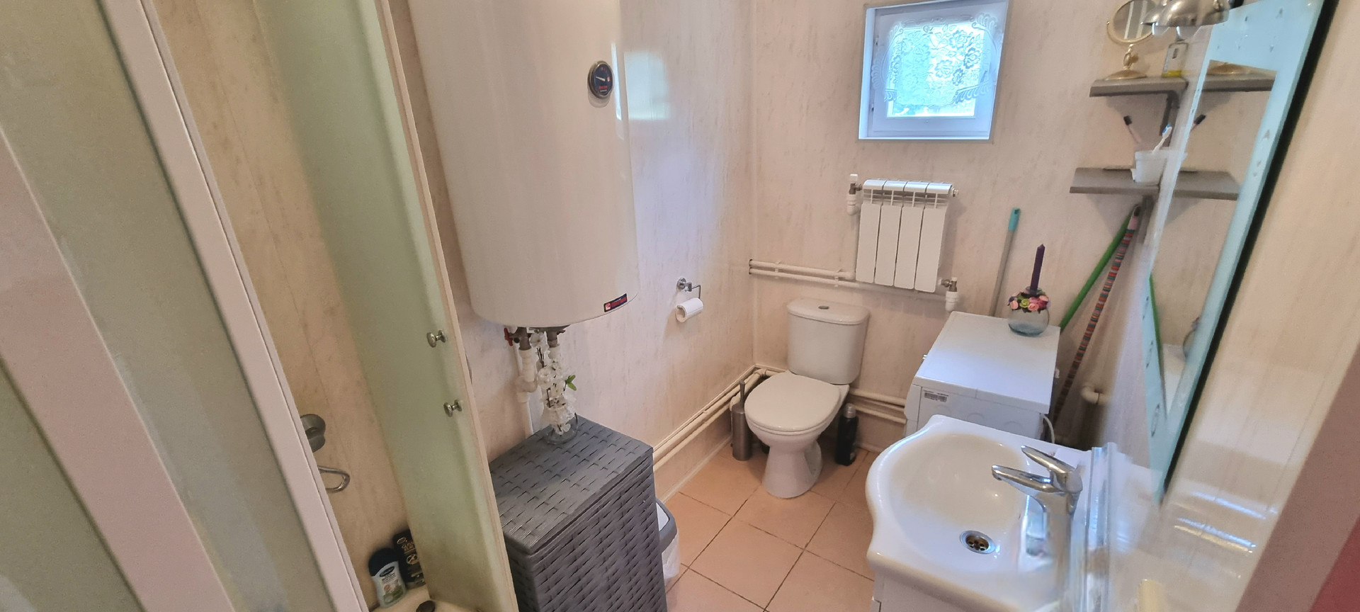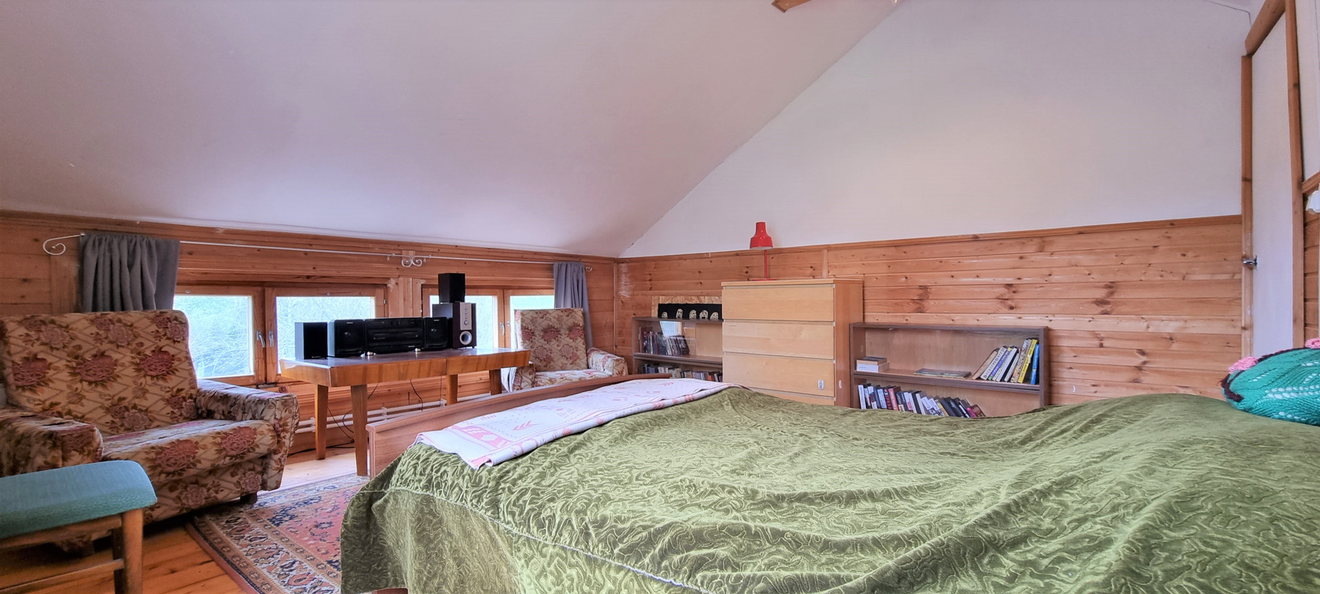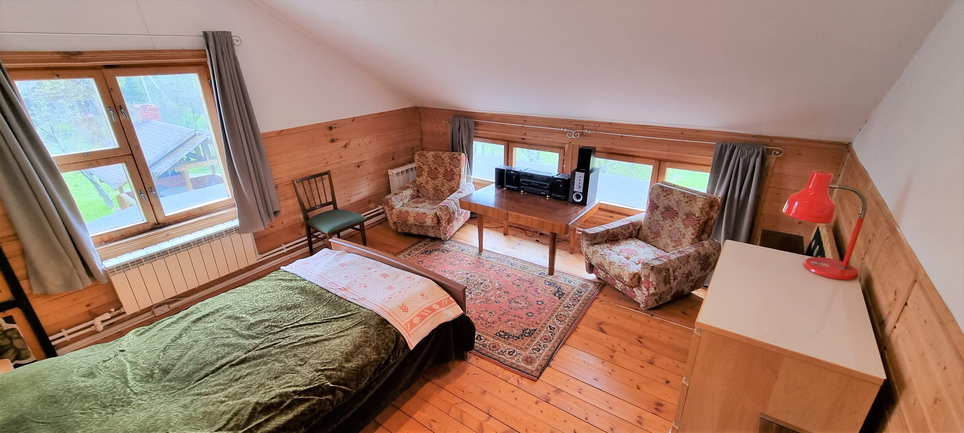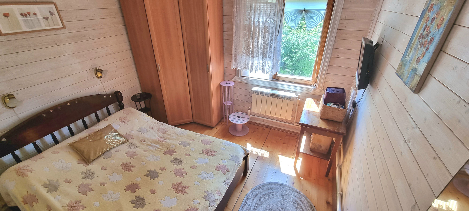 Фундамент: лента, окна: деревянный двойной стеклопакет, кровля: мягкая черепица, вода: скважина 30 метров, септик: автономный. санузел в доме, бойлер на 80 литров, душевая кабина.