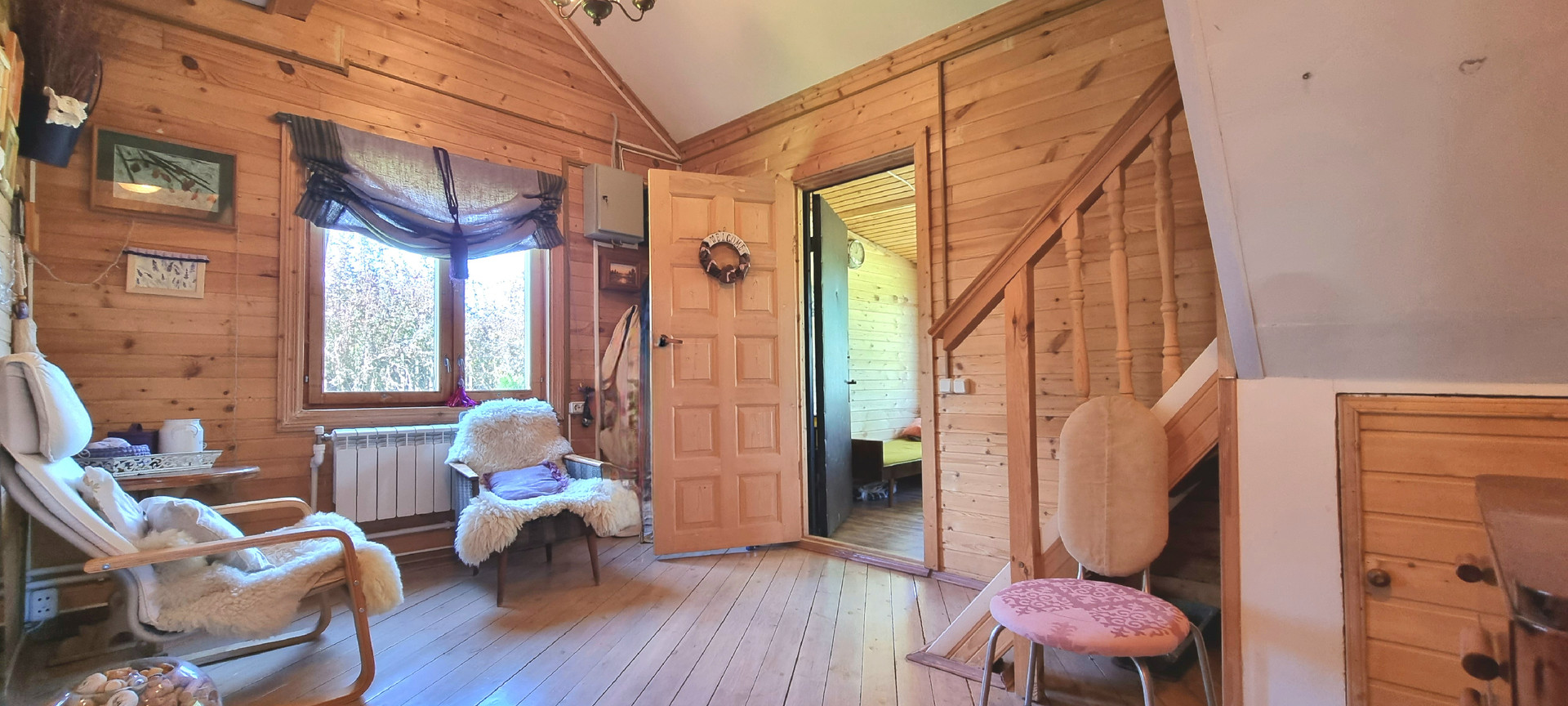 Отделка снаружи: сайдинг, внутри вагонка.