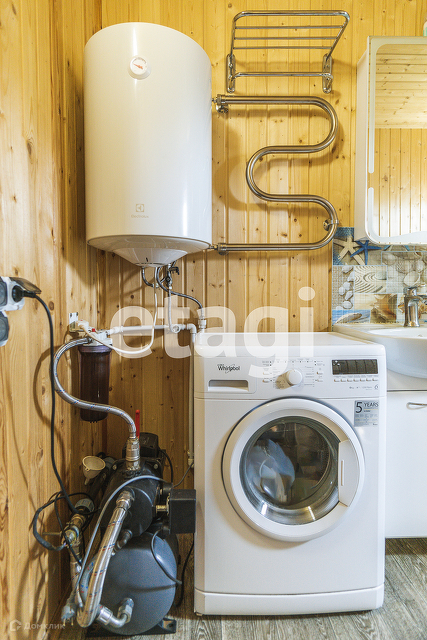 В доме удобная планировка, просторная кухня с качественным кухонным гарнитуром и хорошей техникой, большая светлая гостиная и санузел с прачечной зоной для стиральной машины.