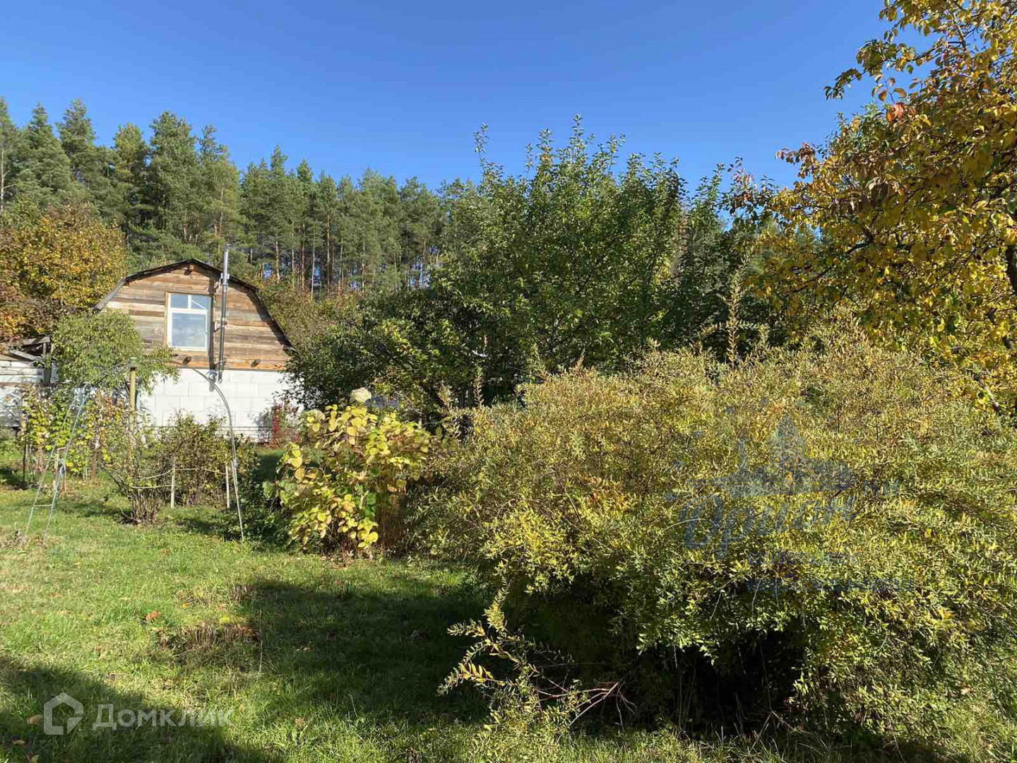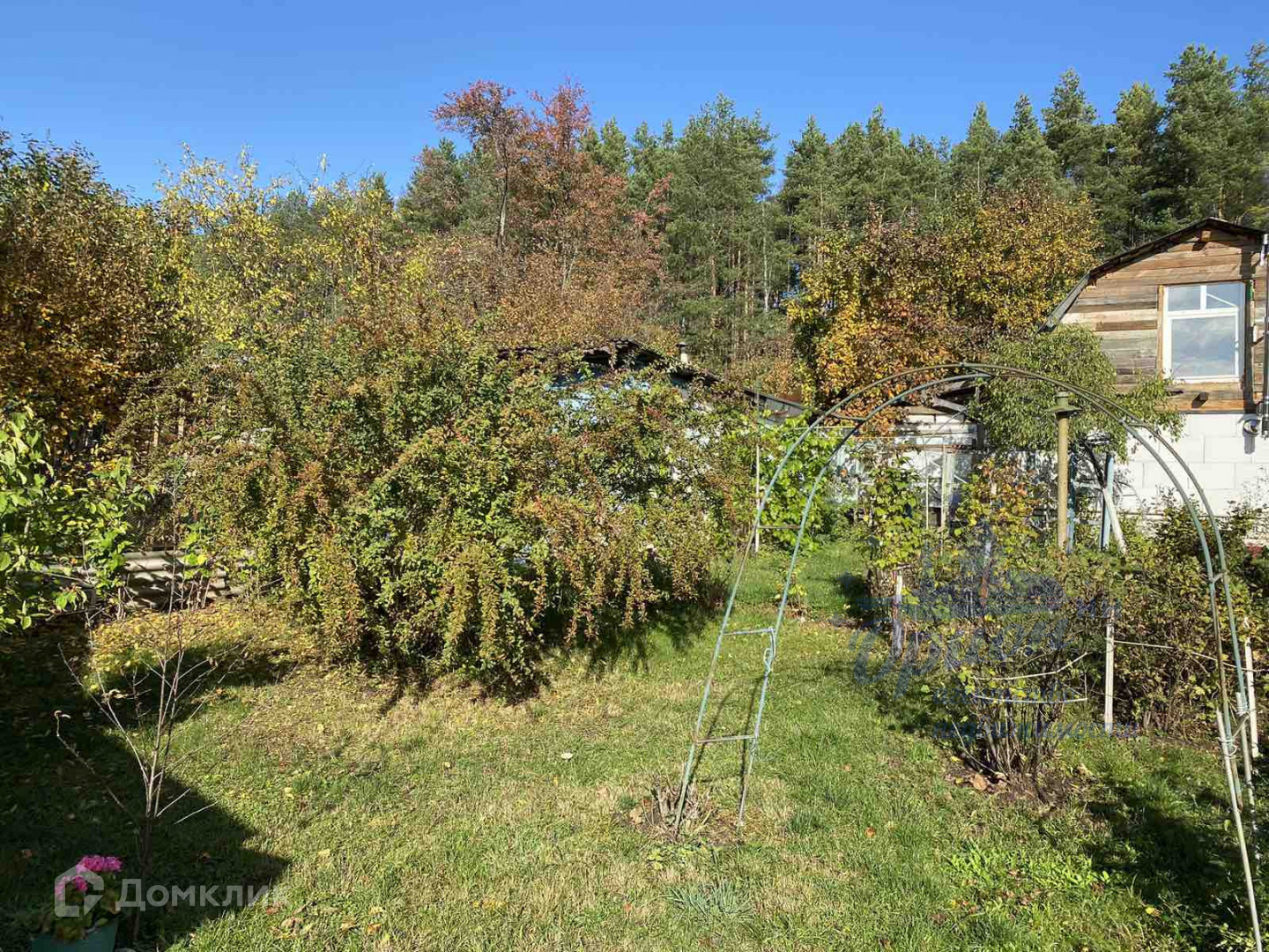 на участке плодово-ягодные  деревья( яблони, красная/черная смородина ,клубника, крыжовник, виноград) .Туи, цветы и газон. Имеется 2 хозяйственные постройки + Баня с отличной сауной .Есть ворота для заезда автомобиля на участок.