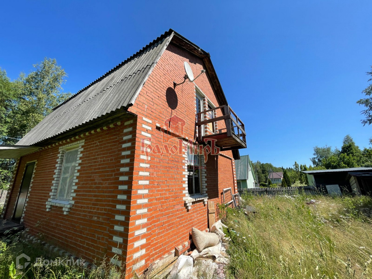 Дом  2-х этажный, построен из кирпича, имеет ленточный фундамент. Стены и потолки утеплены. На первом этаже расположены : гостиная, кухня и техническая комната. Отопление первого этажа трехконтурный котел , так же на первом этаже есть камин. Второй этаж представляет из себя  две спальни и балкон. Вода и туалет на улице. На участке площадью 5.5 расположен колодец, небольшая беседка. Дом зарегистрирован как ЖИЛОЙ, возможна прописка.