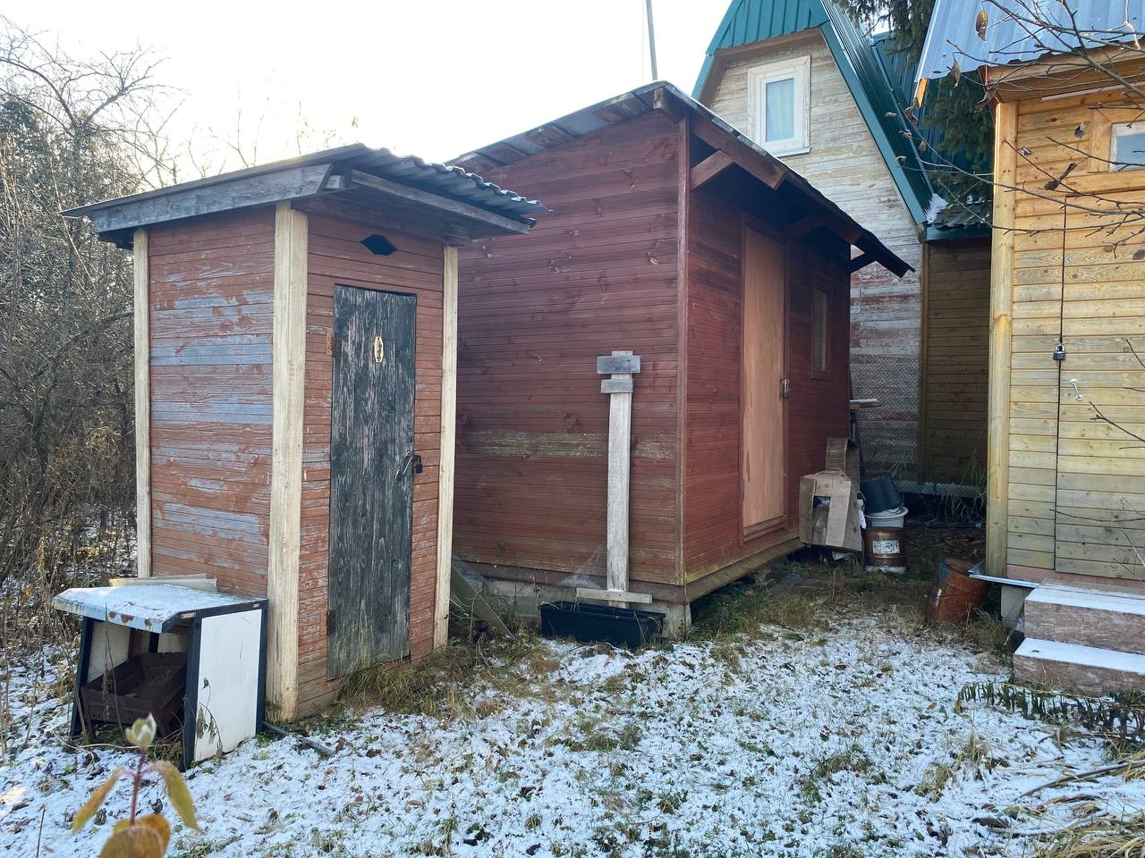 Участок ровный, огорожен сеткой рабицей, сухой. На нем расположены хозблок, туалет, и новая баня с душевой. Большую часть участка занимает газон, клумбы, кустарники, плодово-ягодные деревья. Подъезд к участку круглогодичный. Многие соседи живут постоянно. Категория земель - земли сельскохозяйственного назначения, разрешение использование для садоводства.