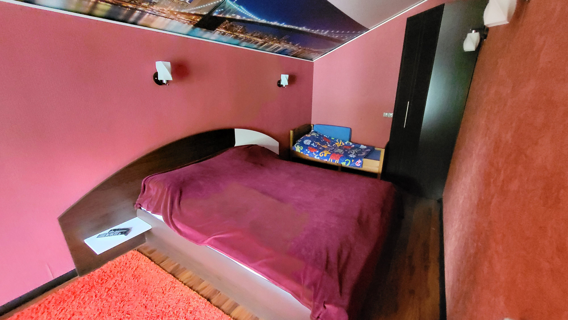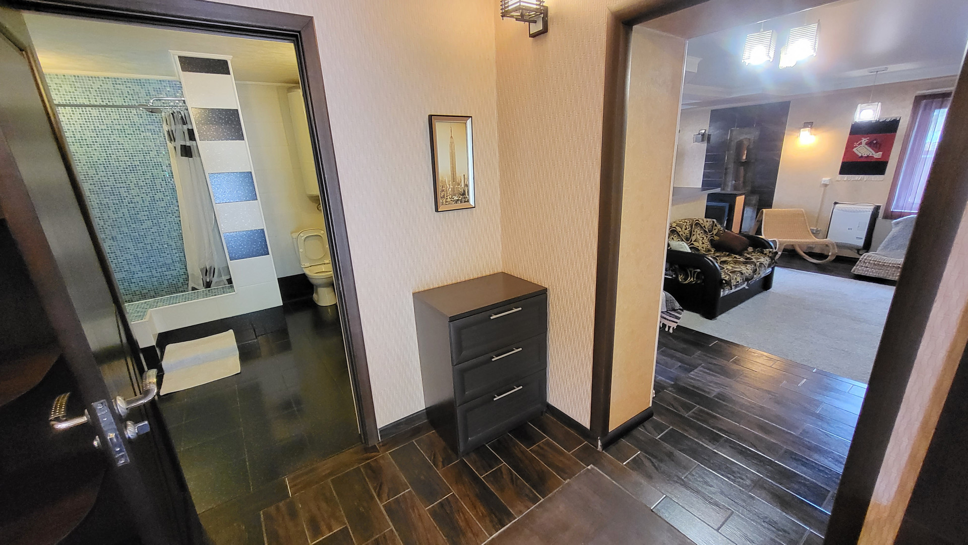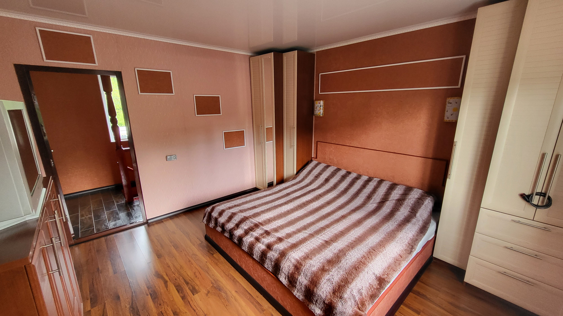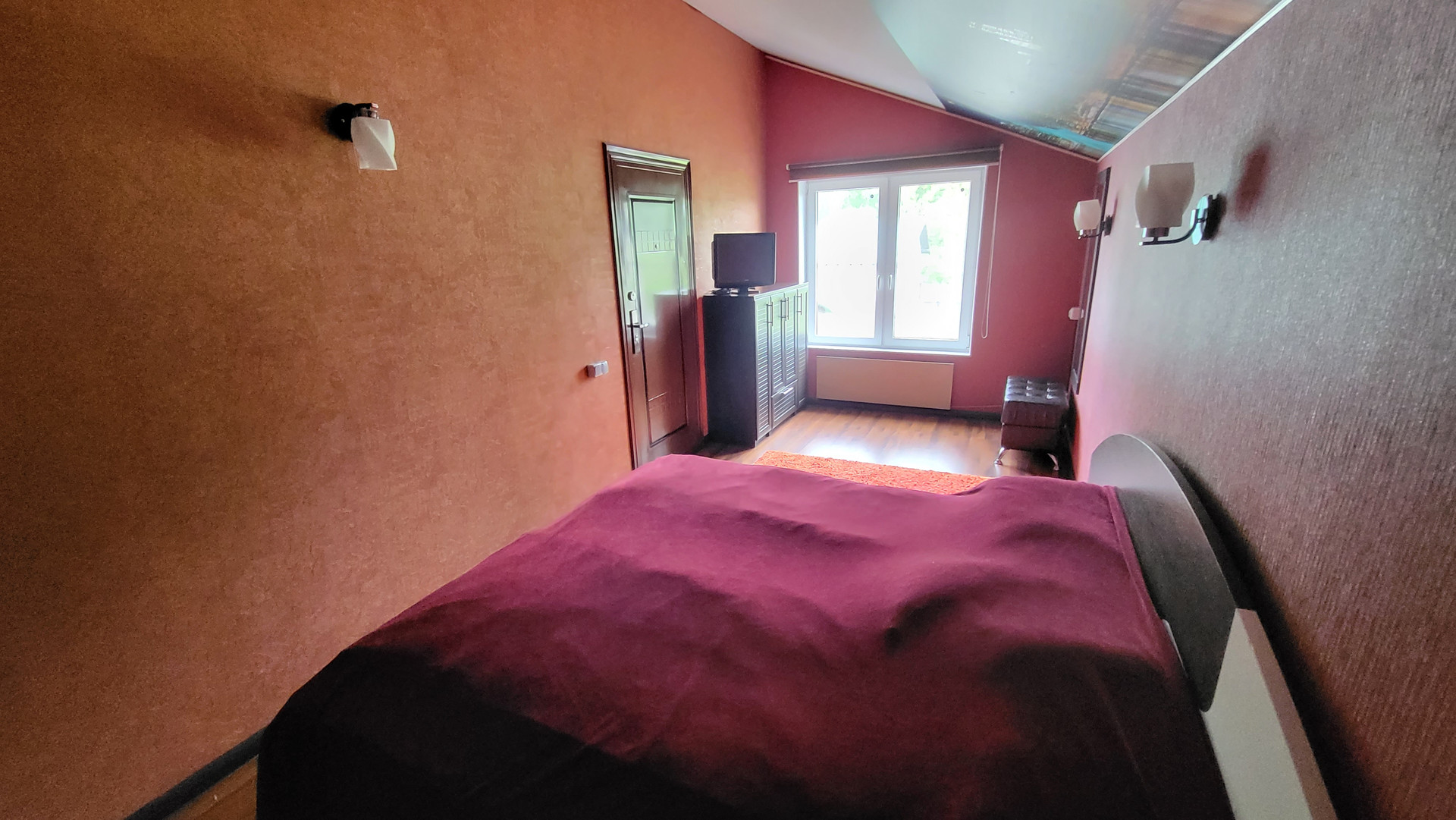 Дом 2 этажный. 1-й этаж: прихожая, ванная с с/у, кухня-гостиная с барной стойкой (студия), гостевая спальня; 2-ой этаж - 2 спальни; чердак - свободная планировка.