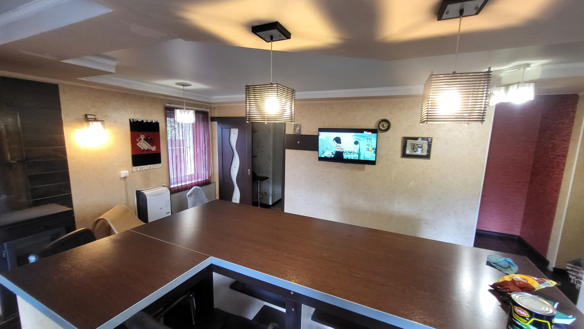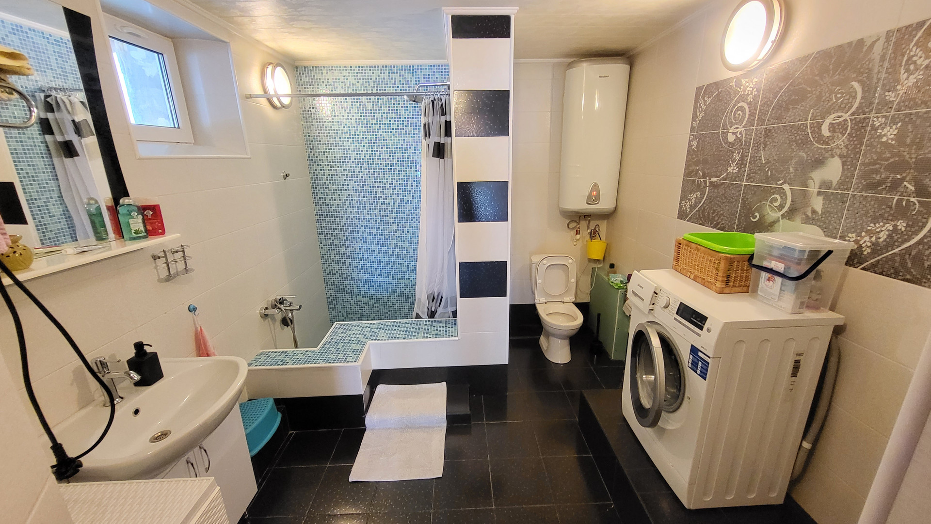 Кухонный гарнитур со встроенной техникой; в ванной стиральная машинка. Скважина под домом, теплые полы на 1-м этаже, в гостиной небольшая печь. Канализация - септик Топас. Во всех комнатах мебель на заказ - шкафы, комоды.