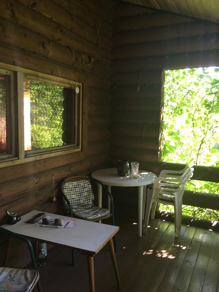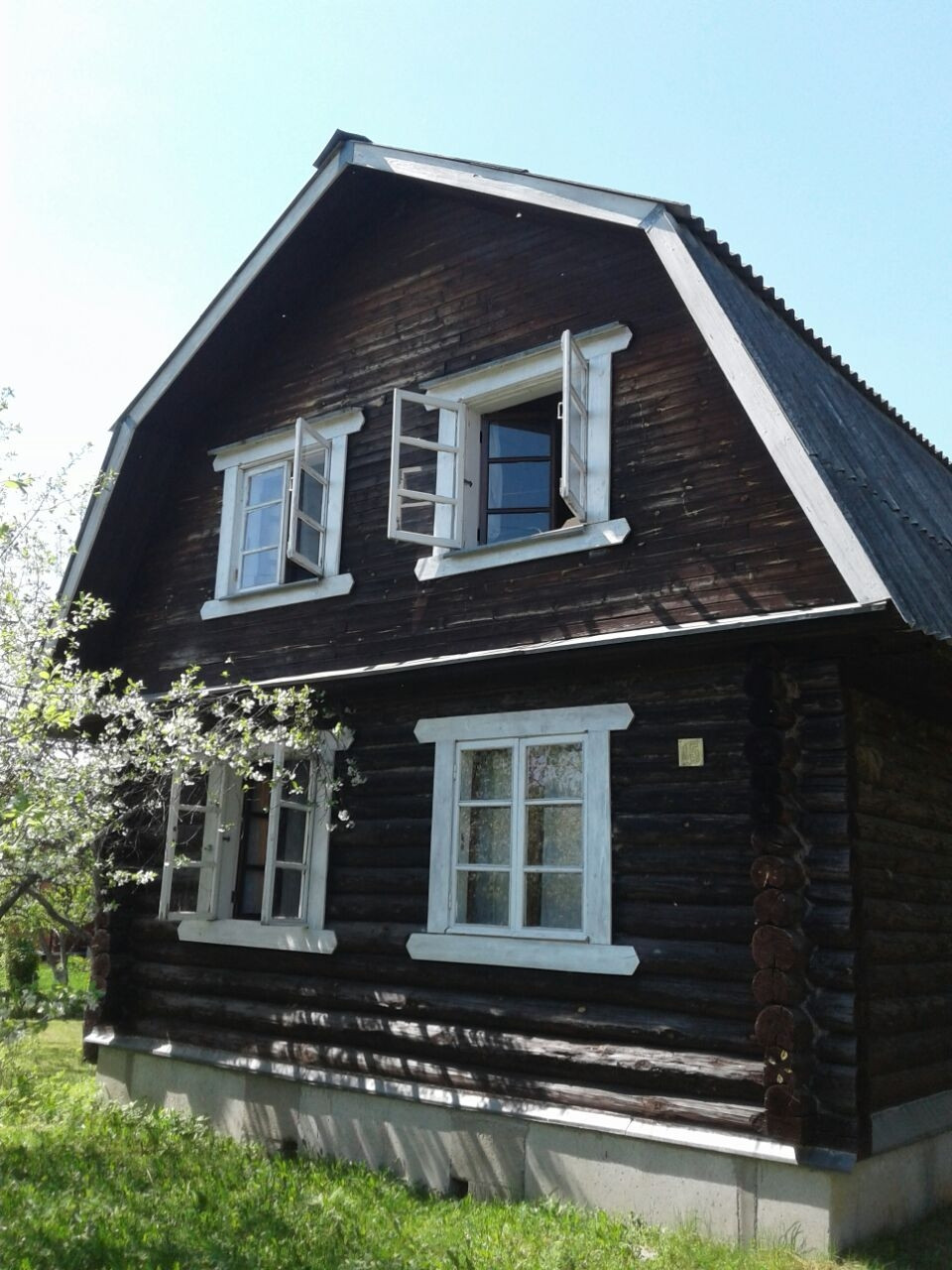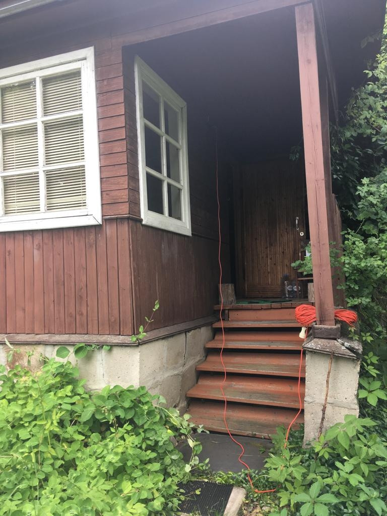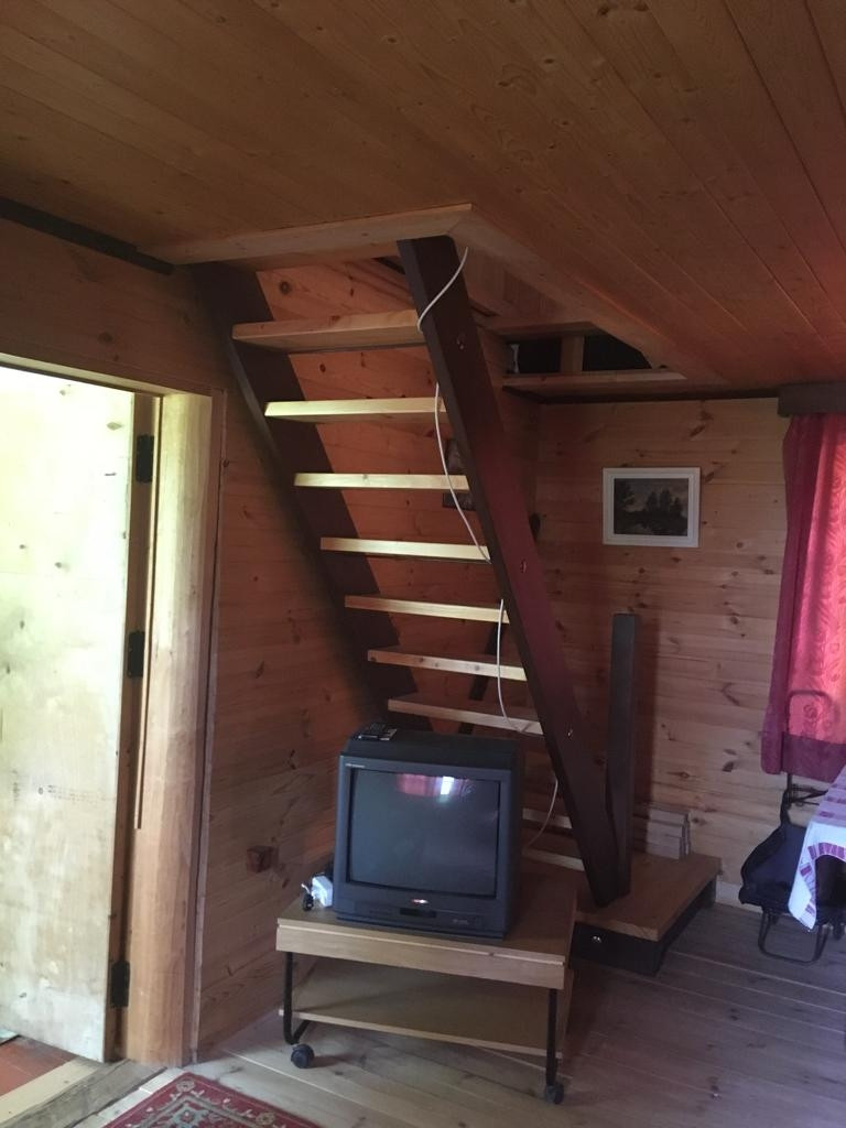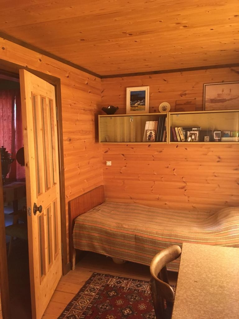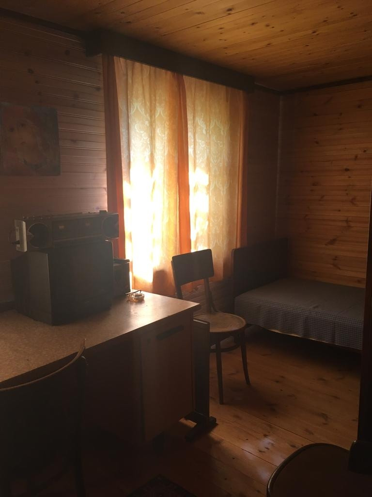 Двухэтажный дом из сруба на ленточном фундаменте (брёвна 20 см). На 1-м этаже - кухня, проходная комната с печкой, изолированная комната. На 2-м этаже - 2е изолированные комнаты.