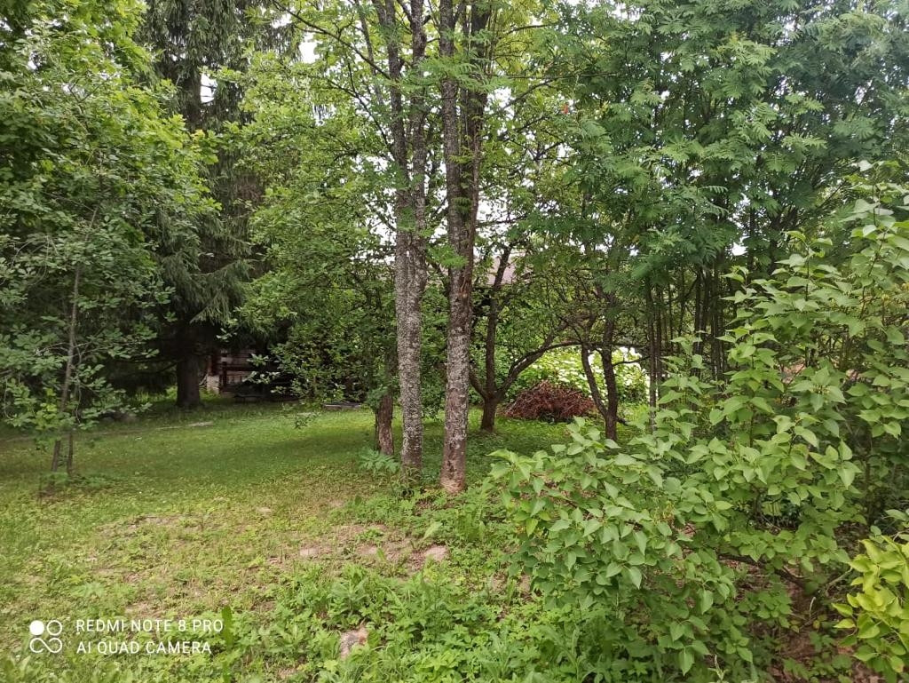 Зелёный, огороженный участок 12 соток с плодовыми деревьями. На участке расположены 2 дома (64 и 46 кв.м. по свидетельствам).