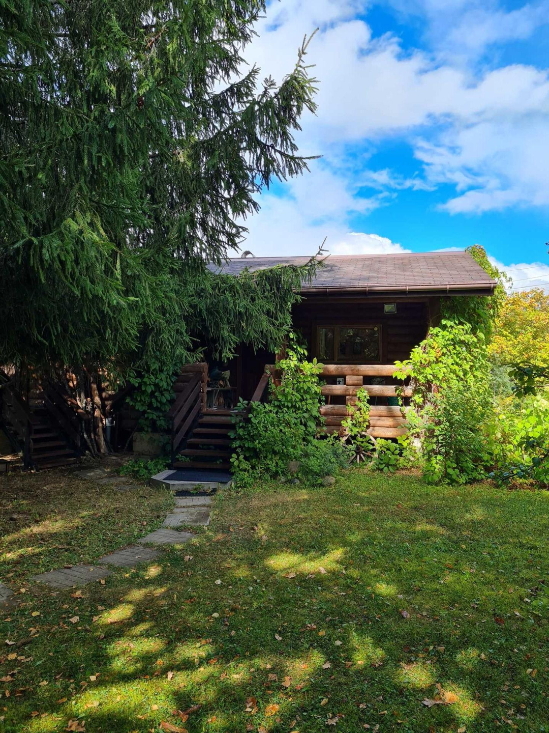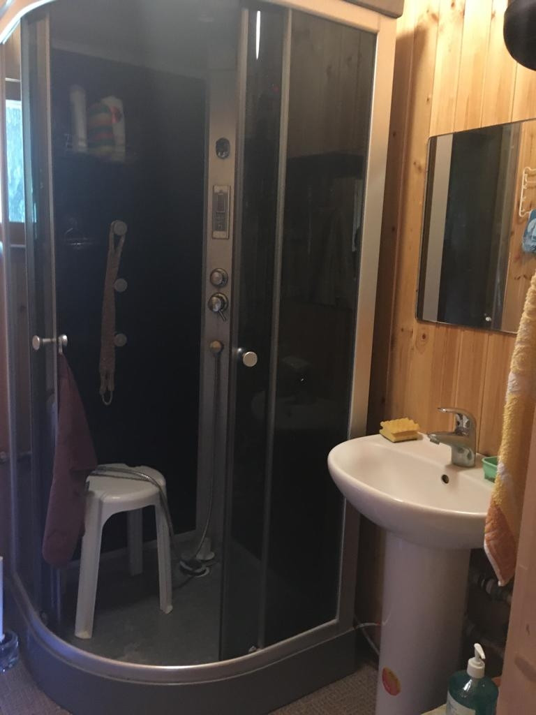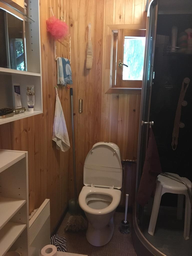 Финский дом из сруба на фундаменте из бетонных блоков (по 90 кг) - 2 комнаты, санузел с душевой кабиной, бойлером + финская баня. И отдельный вход в мастерскую (хоз.блок).