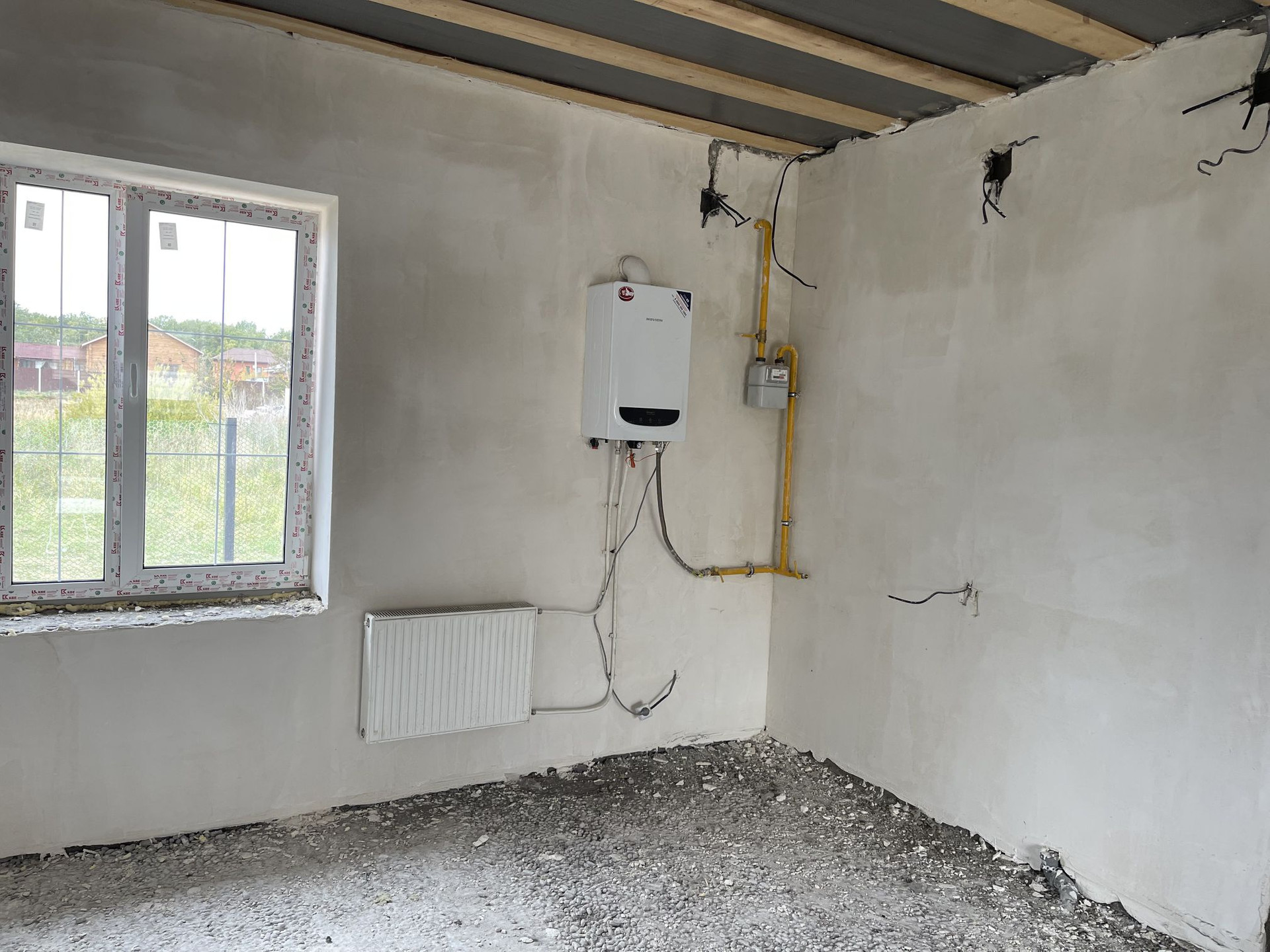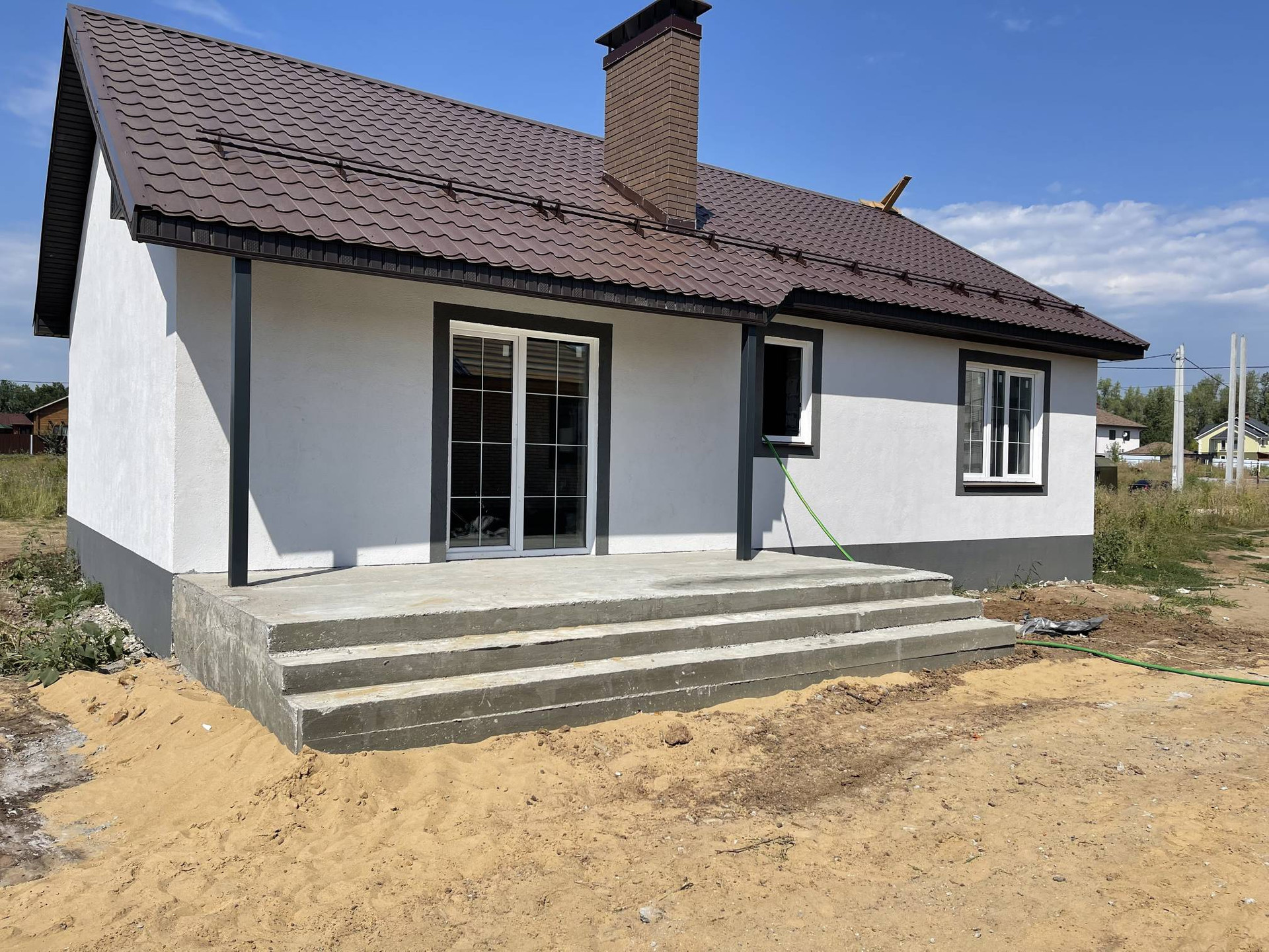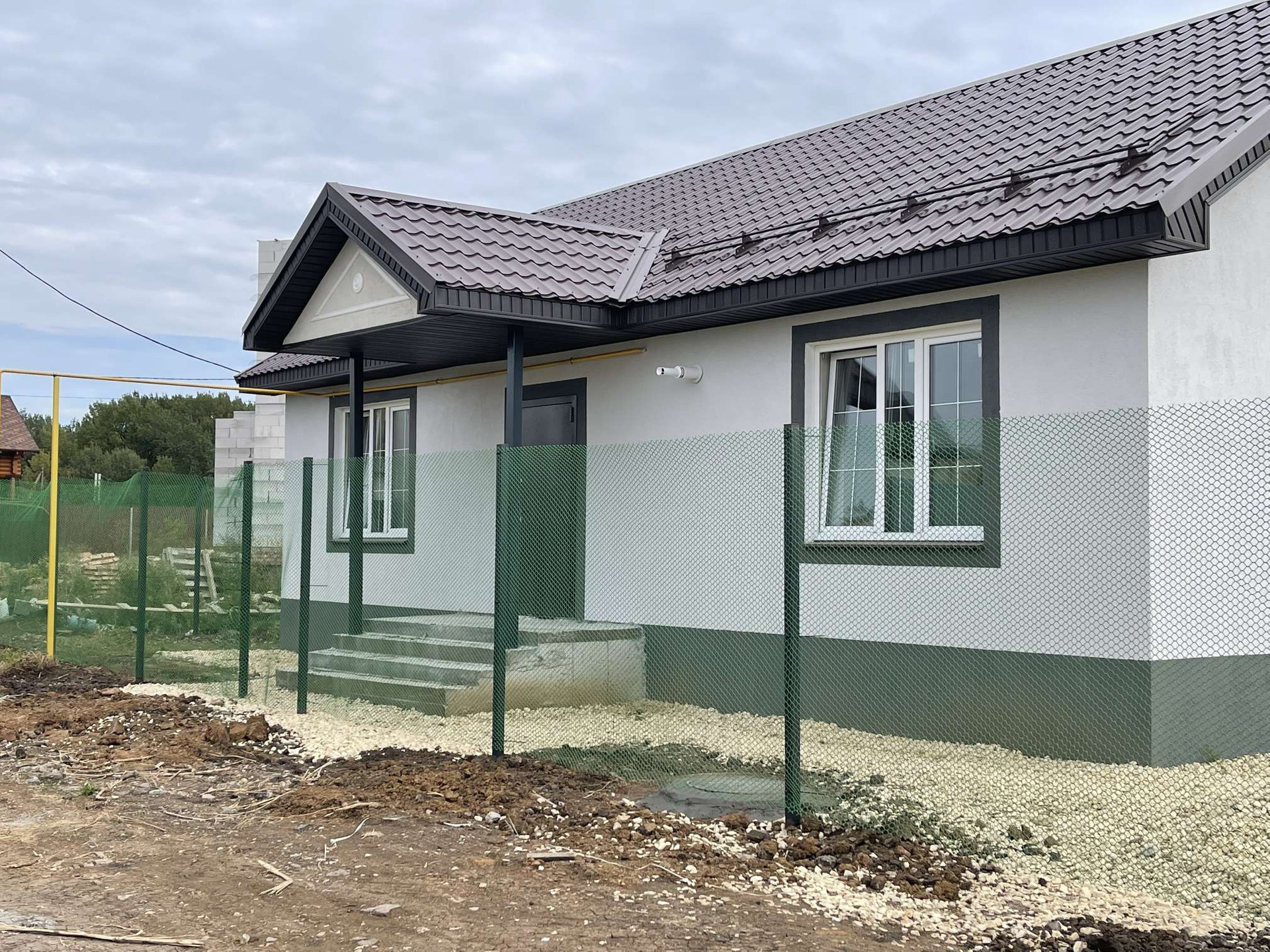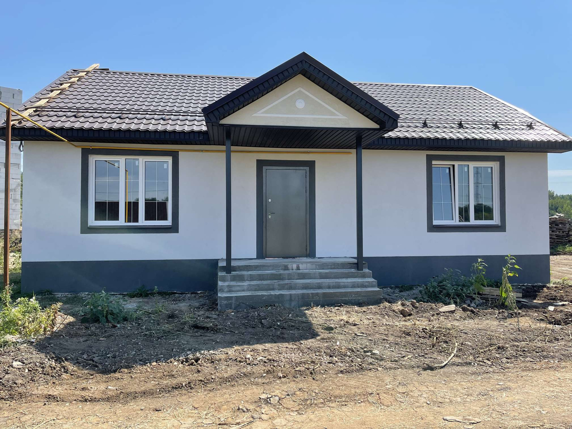Для Вашего удобства внутри дома произведена предчистовая отделка, в которую входит: штукатурка, шпатлевка, разводка электричества и отопления, монтаж подоконников, разводка воды и канализации, стяжка пола. Теплый пол в зоне кухня -гостиная, коридор, сан. узел.