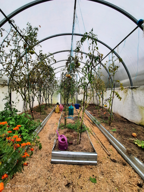На участке построена полноценная баня. Есть хозблок, теплица, мангал. Предусмотрено машиноместо.