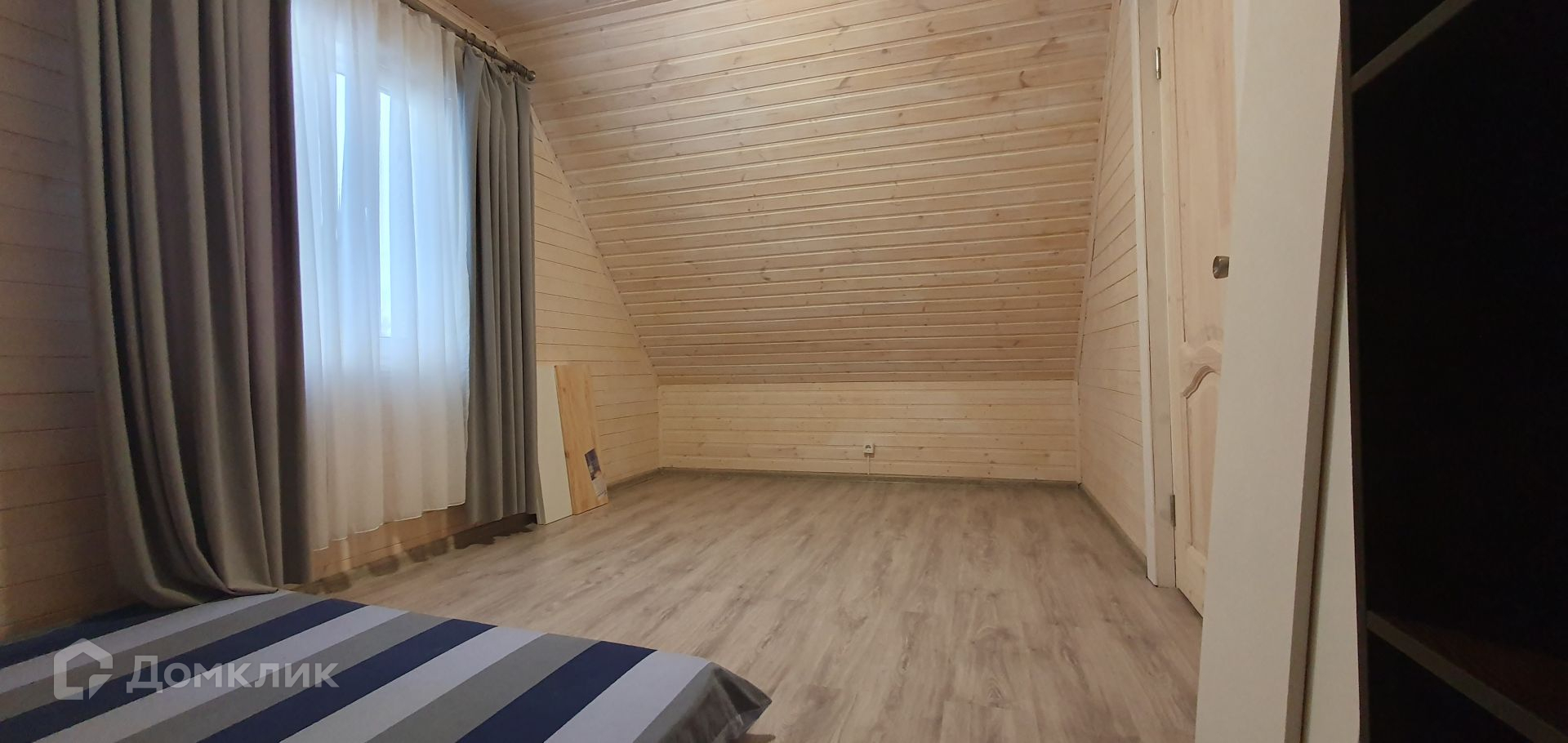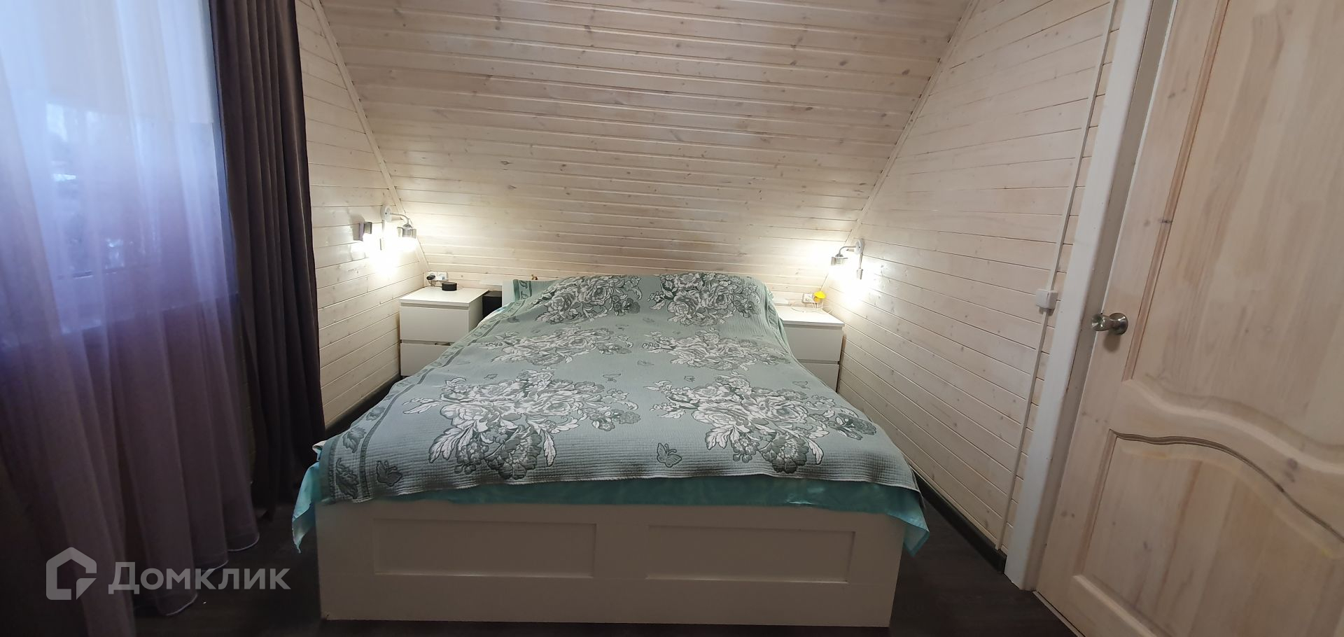 Дом сделан по каркасной технологии и имеет общую площадь 69,6 кв.м. На первом этаже располагается прихожая, коридор, кухня, одна из спален, санузел и гостиная.  На втором этаже находятся две спальни и кладовка.