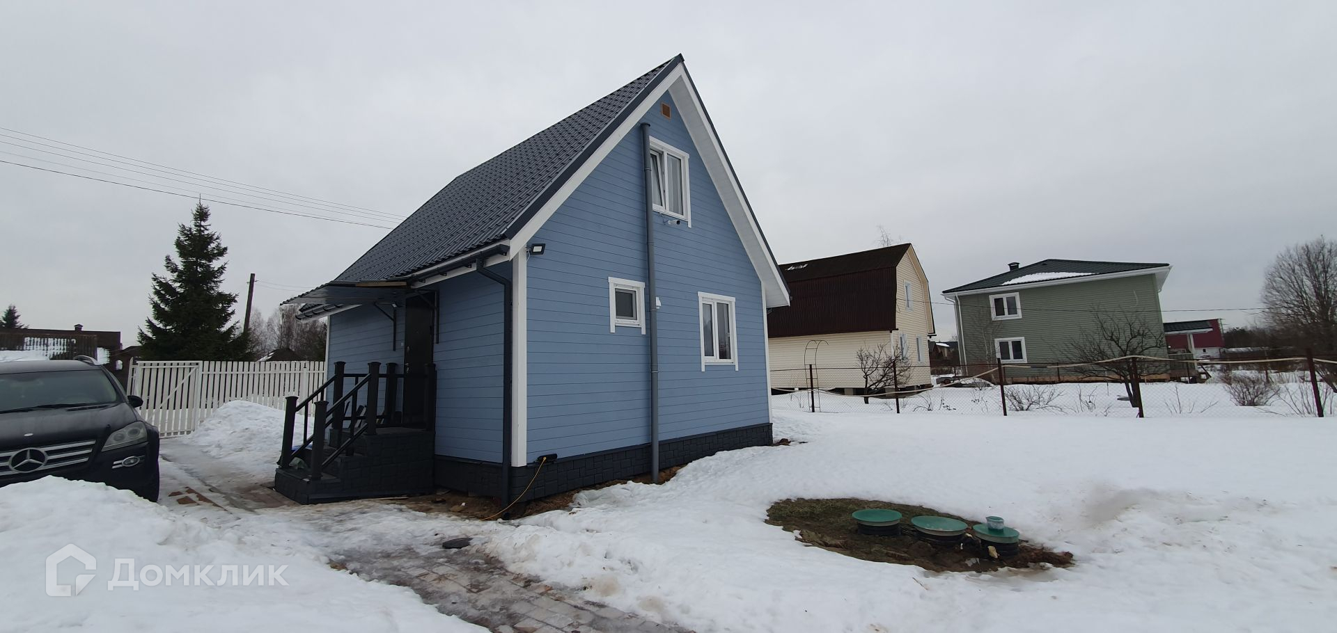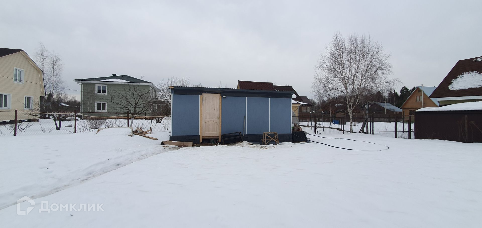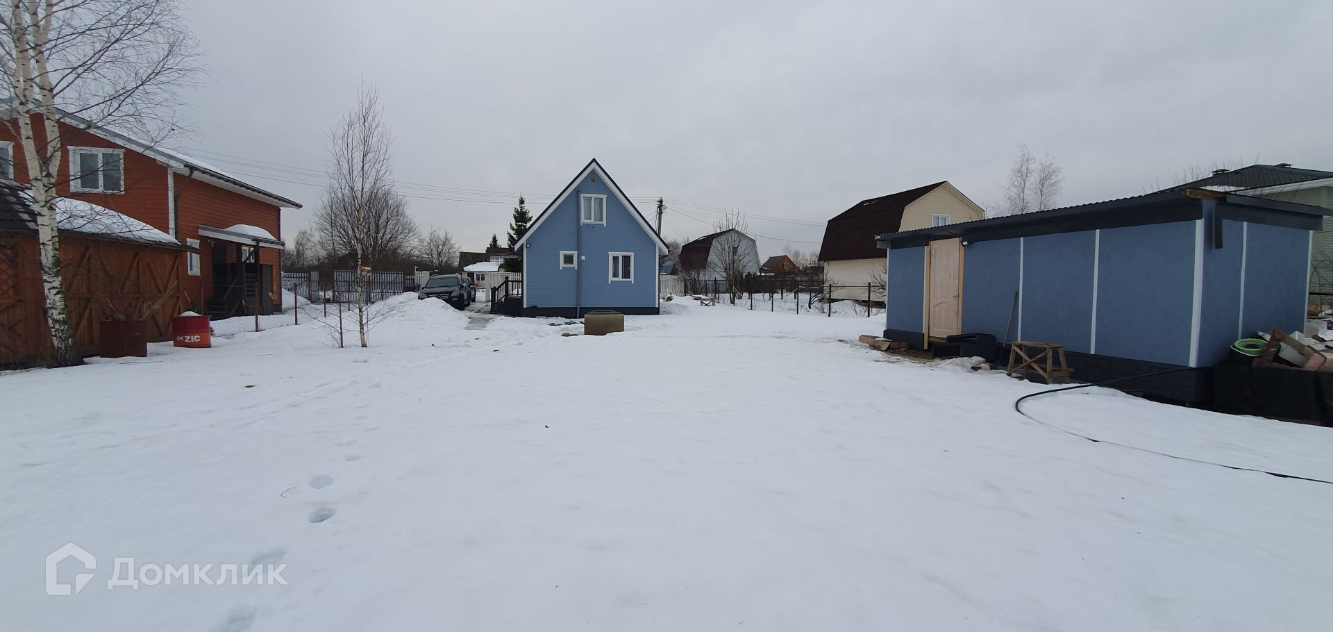 Участок ровный и ухоженный, имеет прямоугольную форму. По границе участка сделан дренаж, что обеспечивает сухость во время дождей и таяния снега.  На участке есть хозблок, который можно использовать для хранения садового инвентаря.  По периметру участка сделан забор, въезд на территорию осуществляется через автоматические ворота.