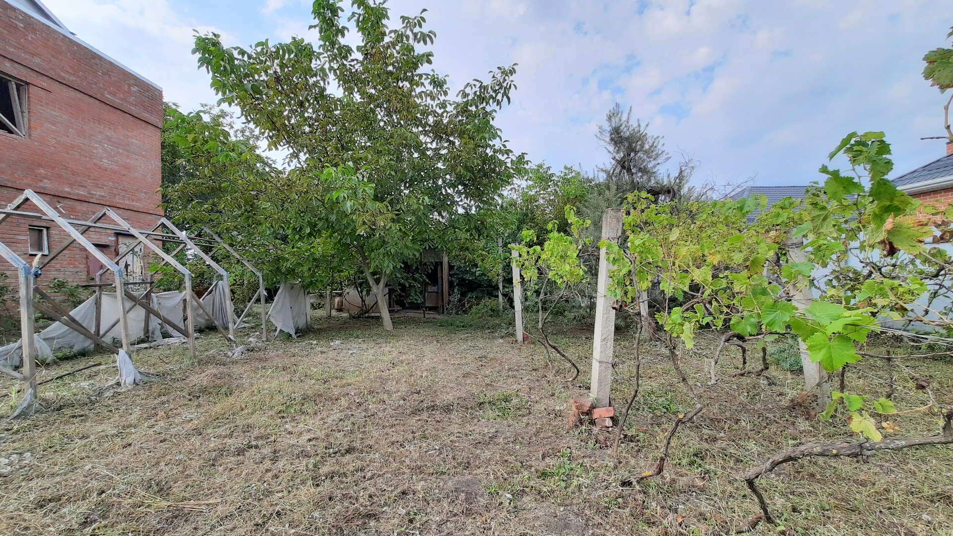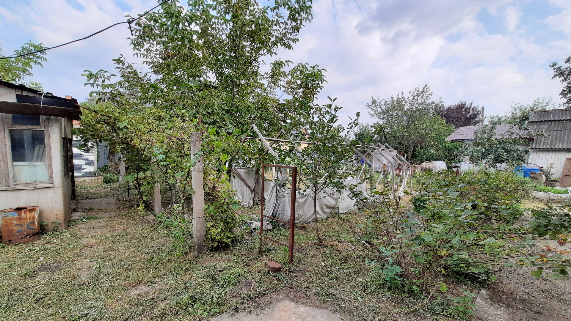 Что касается участка, то на нем высажены плодовые деревья и кустарники, имеется хоз.постройка, бетонный бассейн для воды, деревянный каркас для теплицы. Вода - скажина, свет, центральный газ по меже. Фасад 25 м.