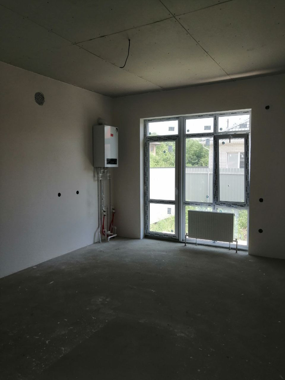 Дом 84 м2, 3 комнаты, кухня-гостинная с выходом на задний двор, теплый пол в зоне кухня, коридор, санузел, качественная предчистовая отделка, добротная входная дверь, перед домом забетонированна площадка под два автомобиля, сделана отмостка, откатнае ворота, по периметру забор из металлопрофиля.