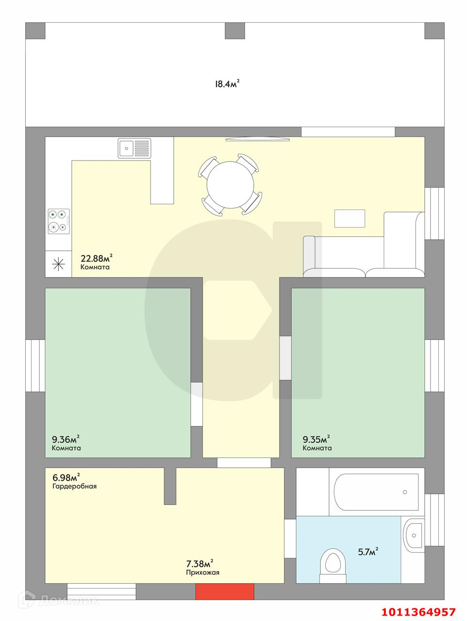 Площадь кухни 22.88 м2