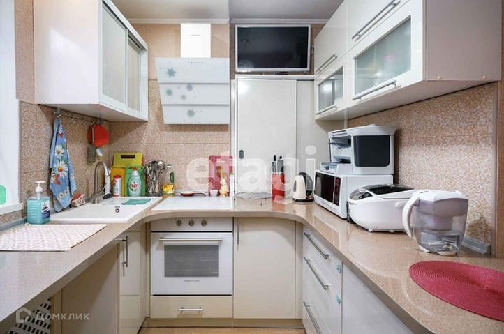 В доме остаётся встроенная кухня с дорогой и новой техникой (варочная панель, духовой шкаф, вытяжка, и посудомойка), в коридоре встроенная прихожая, имеется большая гардеробная комната, в ванной комнате дорогая сантехника, большая кабинка, полы в комнате дорогой и качественный ламинат, в коридоре, ванной тёплые полы) и кухне плитка.
