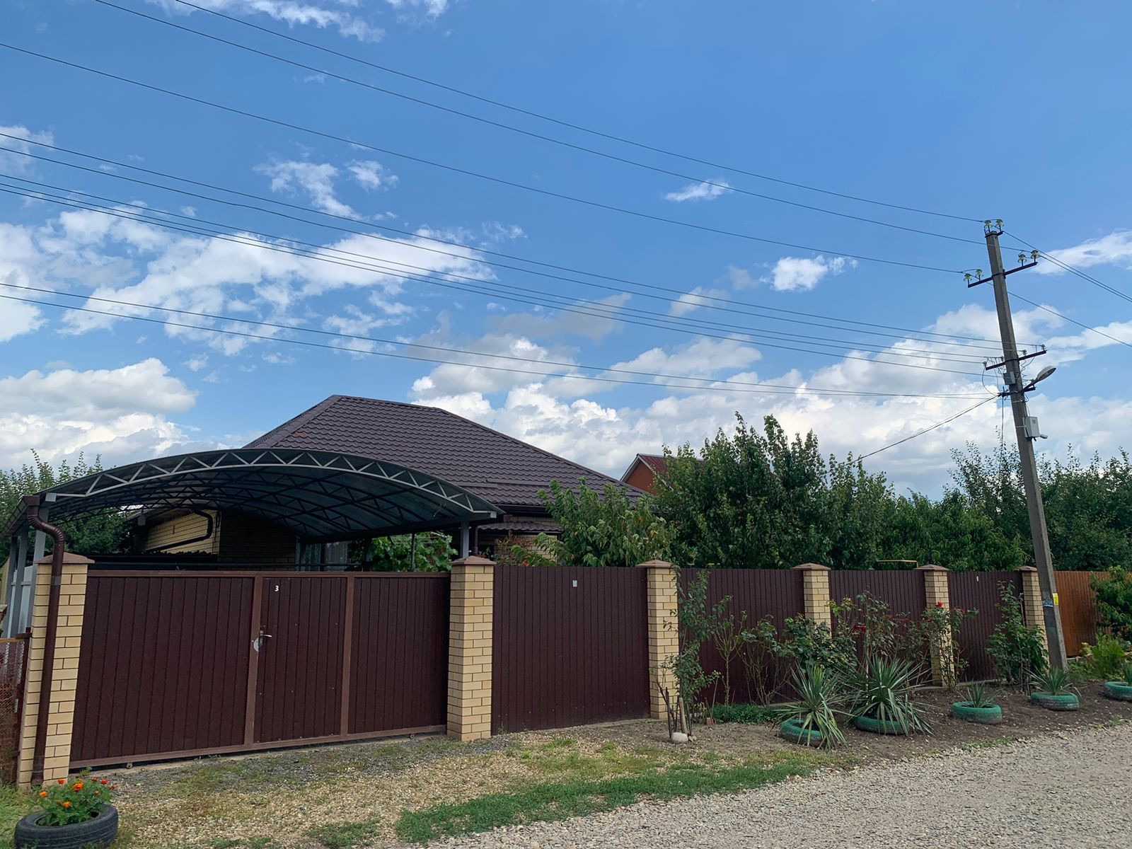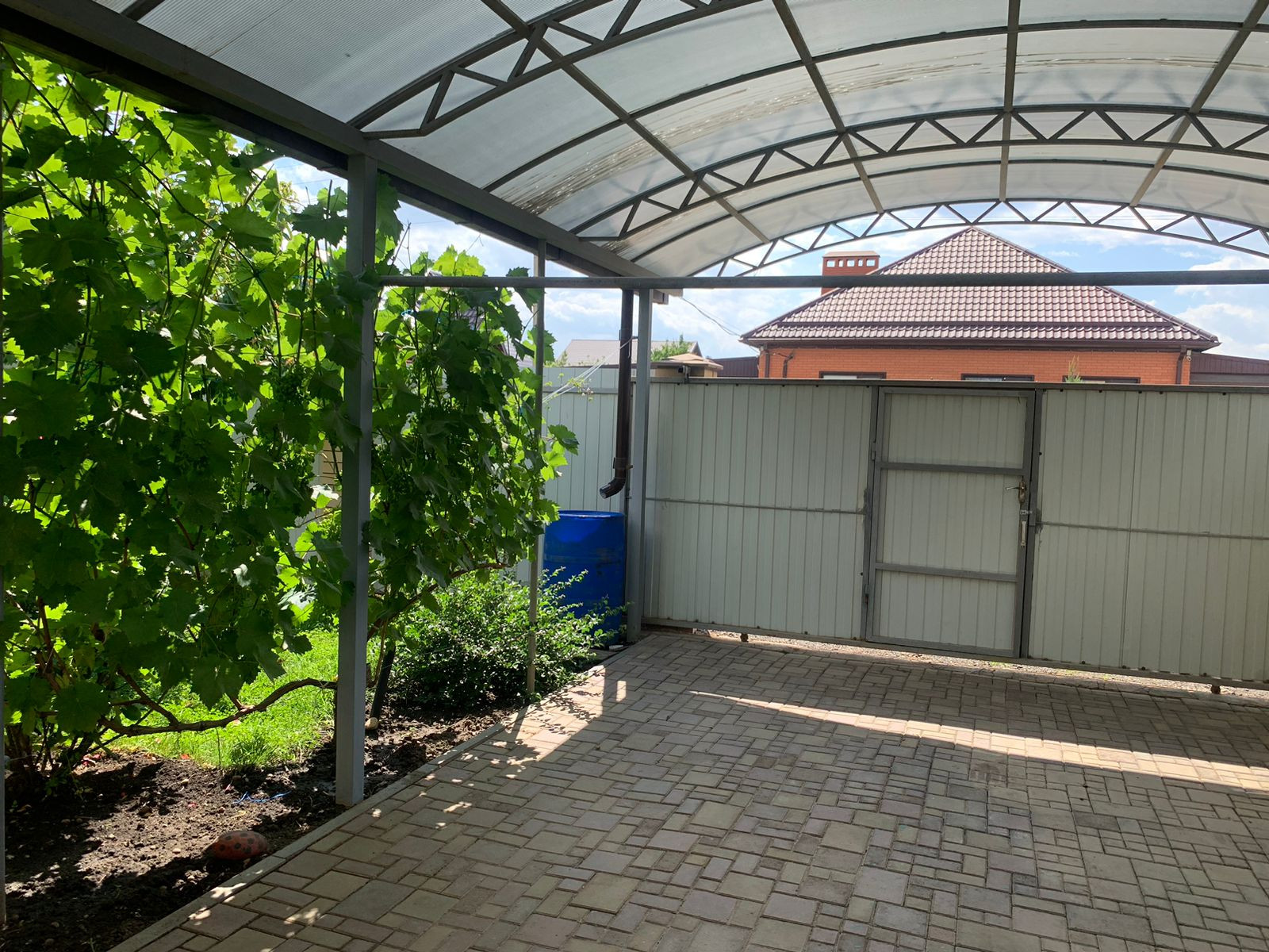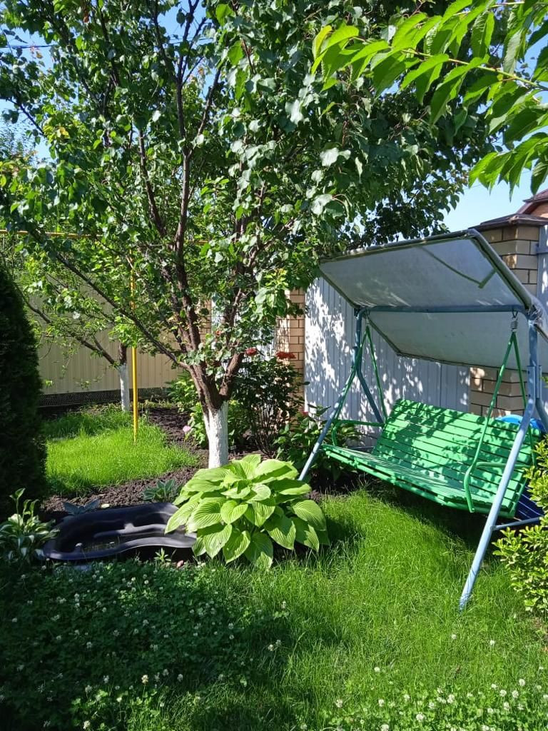 Двор крытый, выложен плиткой. Парковочное место на 2 машины, есть гараж с погребом. На участке молодой сад, уже плодоносит (яблоки, груша, абрикос, персик, вишня, черешня, слива, нектарин, виноград 5 сортов, ежевика, клубника, малина, голубика, смородина, розы). Построена отличная баня. На фото видно как устроена зона отдыха. Возможности этого дома будут полезны для всех членов вашей семьи, каждый для себя найдет занятие.