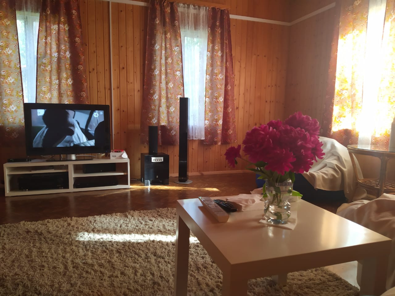 Дом бревенчатый, теплый, очень уютный, строился для круглогодичного проживания, 2- х этажный, 100 кв.м., внутренне отделан –вагонкой, фундамент: бетонно-ленточный, крыша: металлочерепица. Планировка удобная: 1й этаж: кухня-столовая 16 кв.м, с зоной отдыха, просторная гостиная 30 кв.м, туалетная комната с душевой кабиной и стиральной машиной.