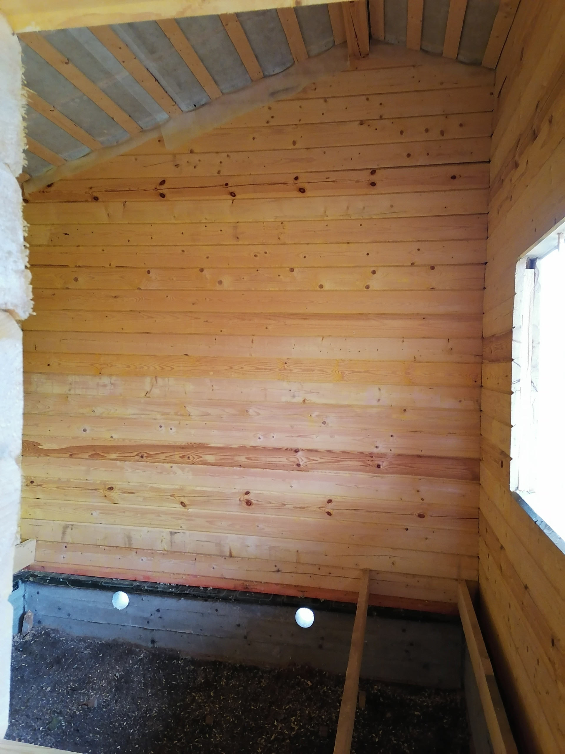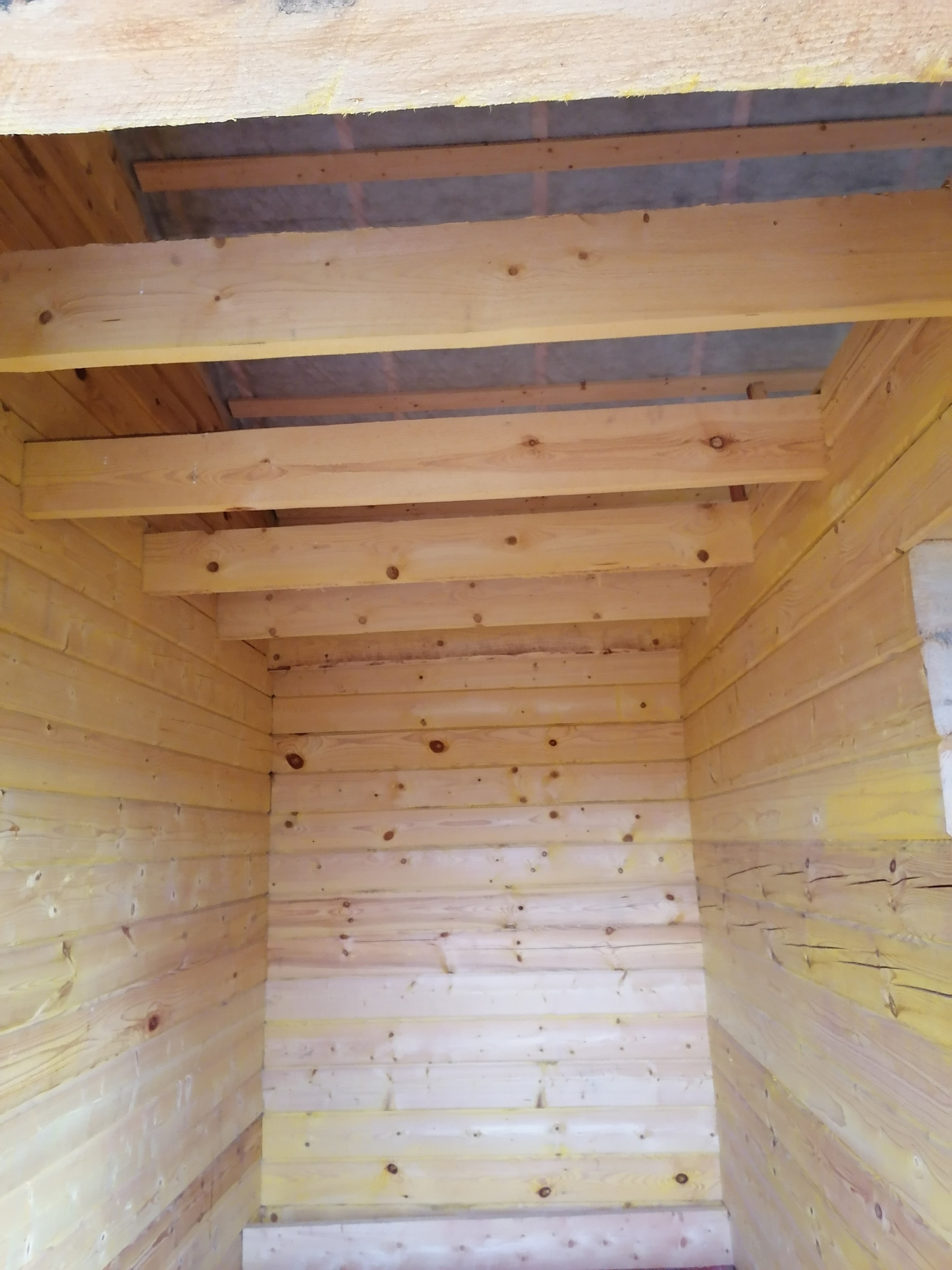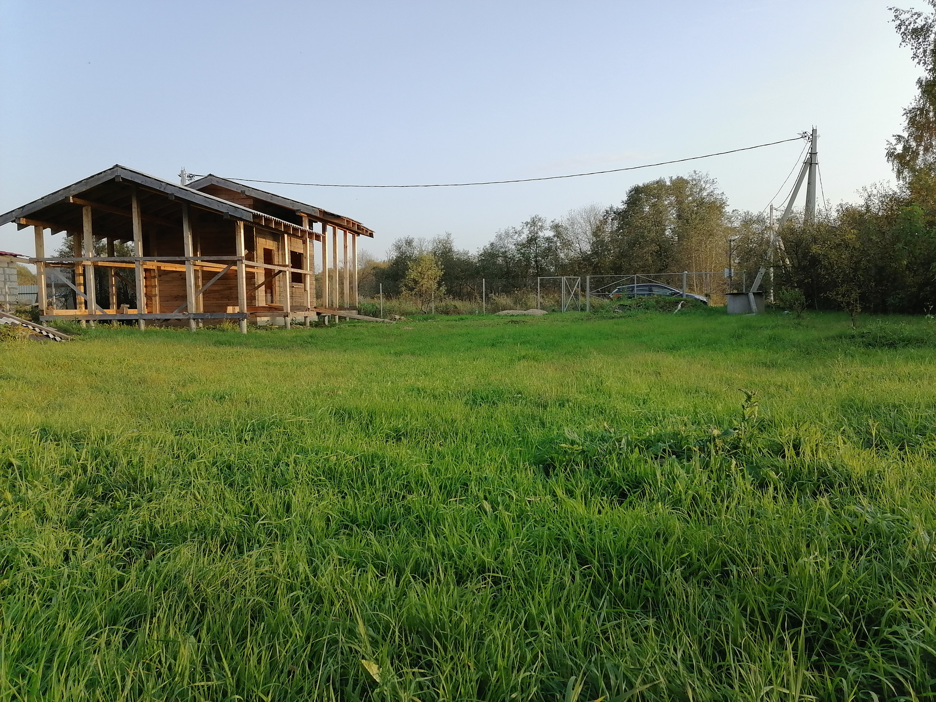 Есть огромный навес для веранды, с возможностью его присоединения и за счёт него расширения дома.