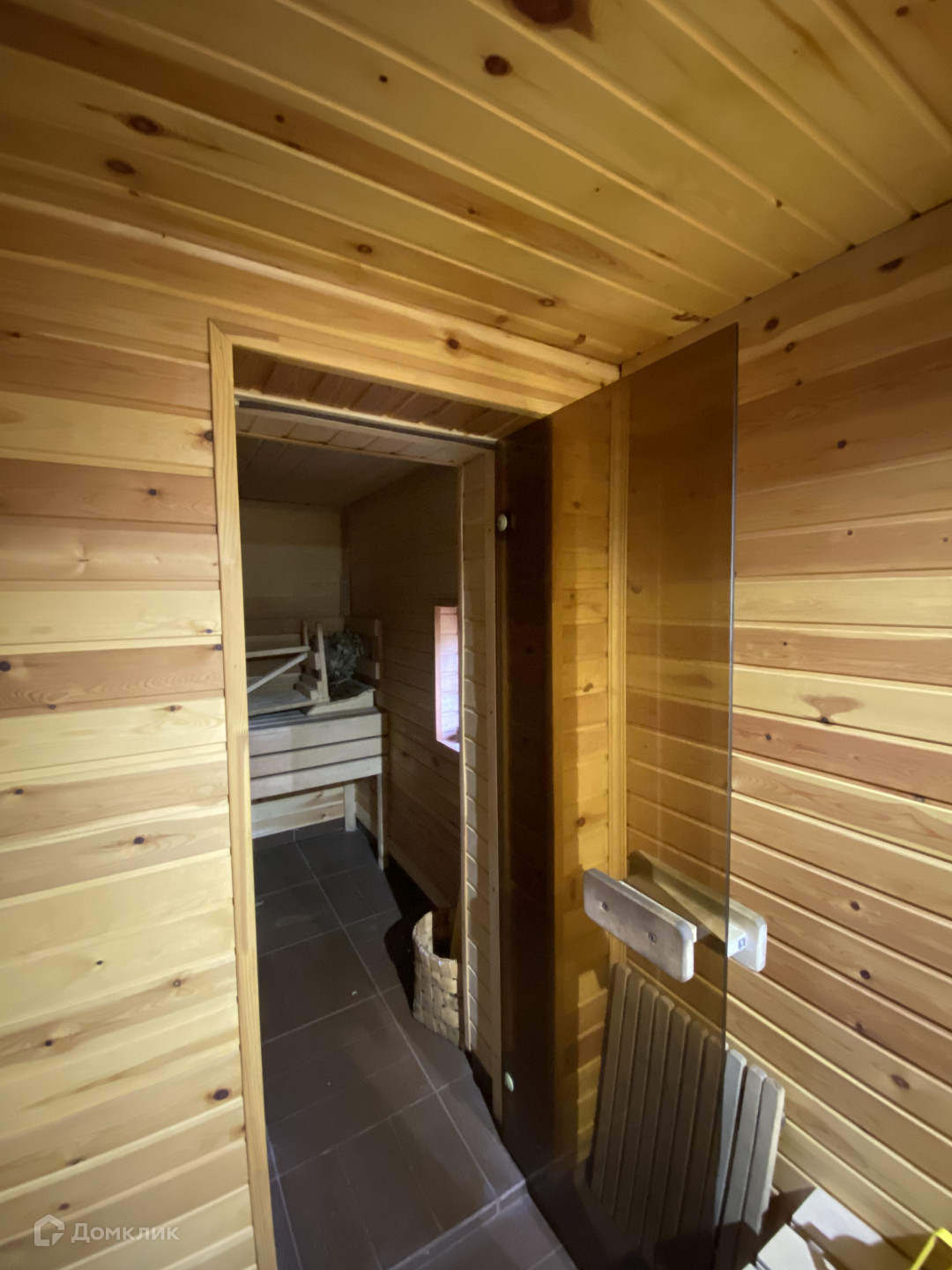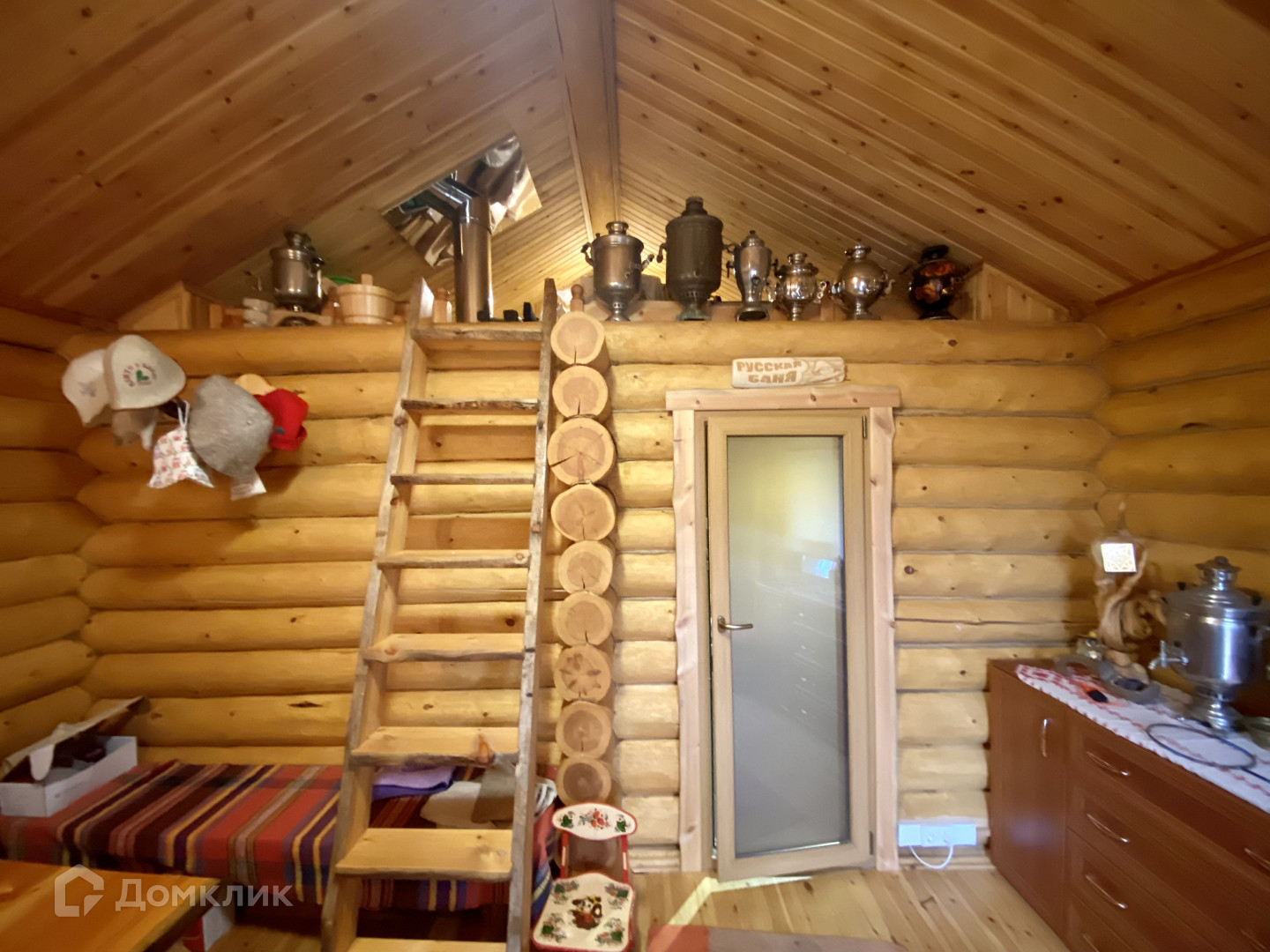 баня, по размеру даже больше чем основной дом, построена из цилиндрованного дерева;