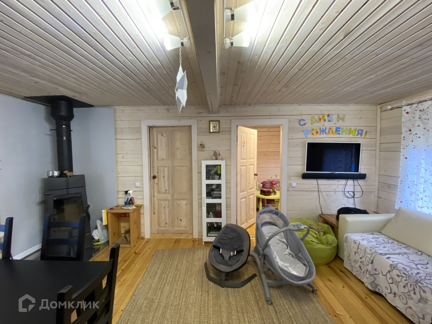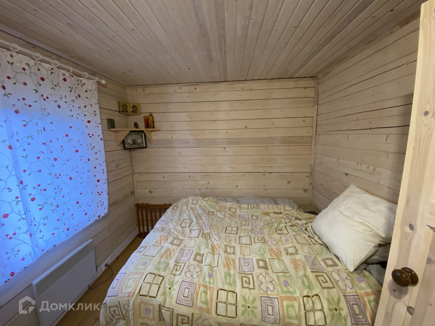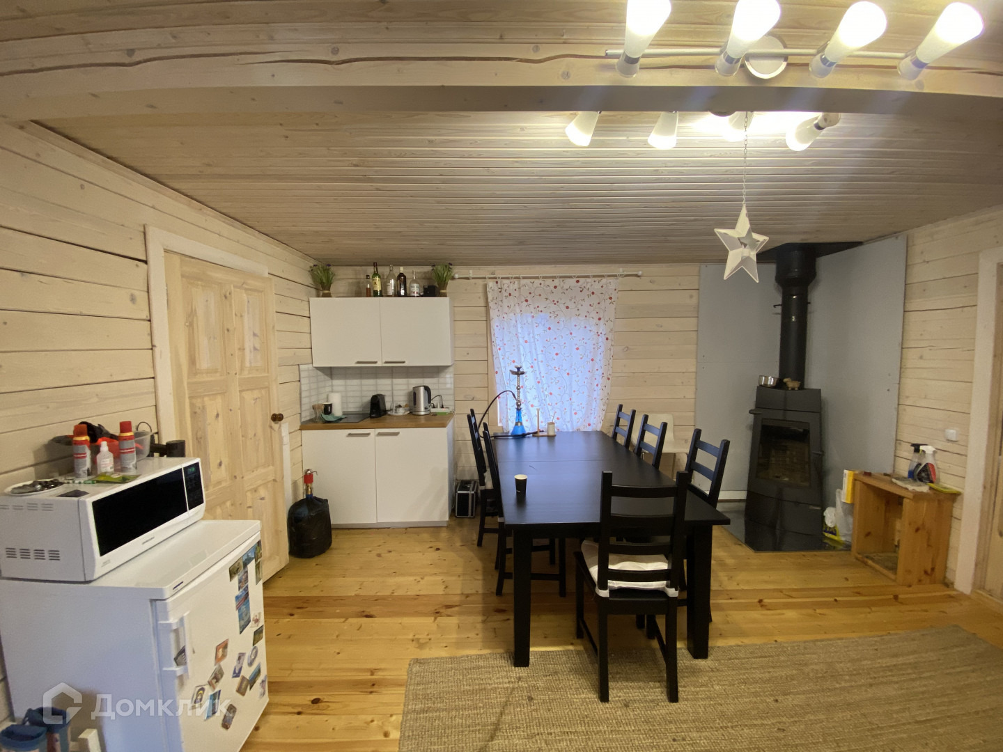 дом из цельного бруса, общей площадью 60 кв.м., с двумя спальнями и просторной кухней-гостиной с красивым камином;