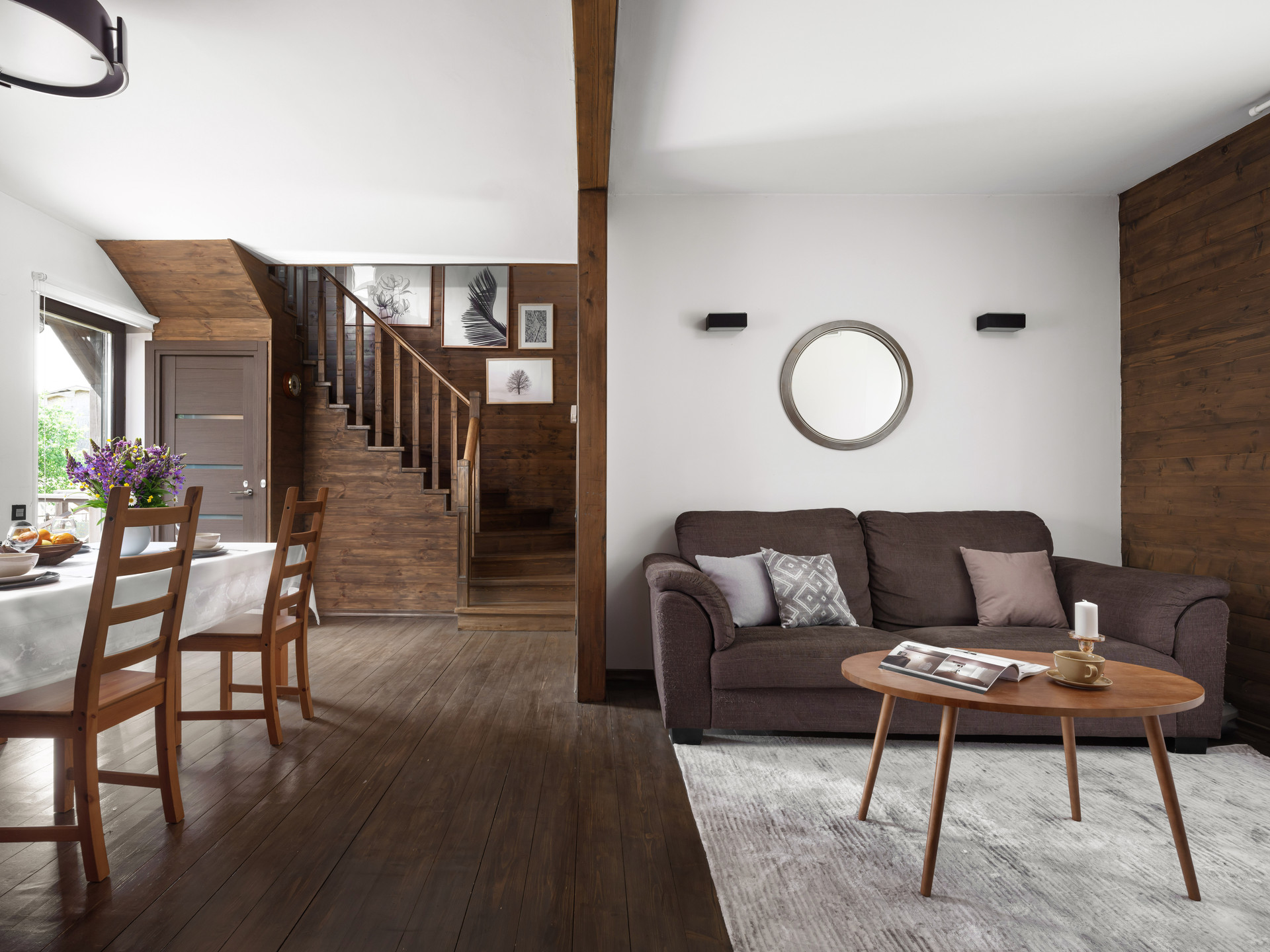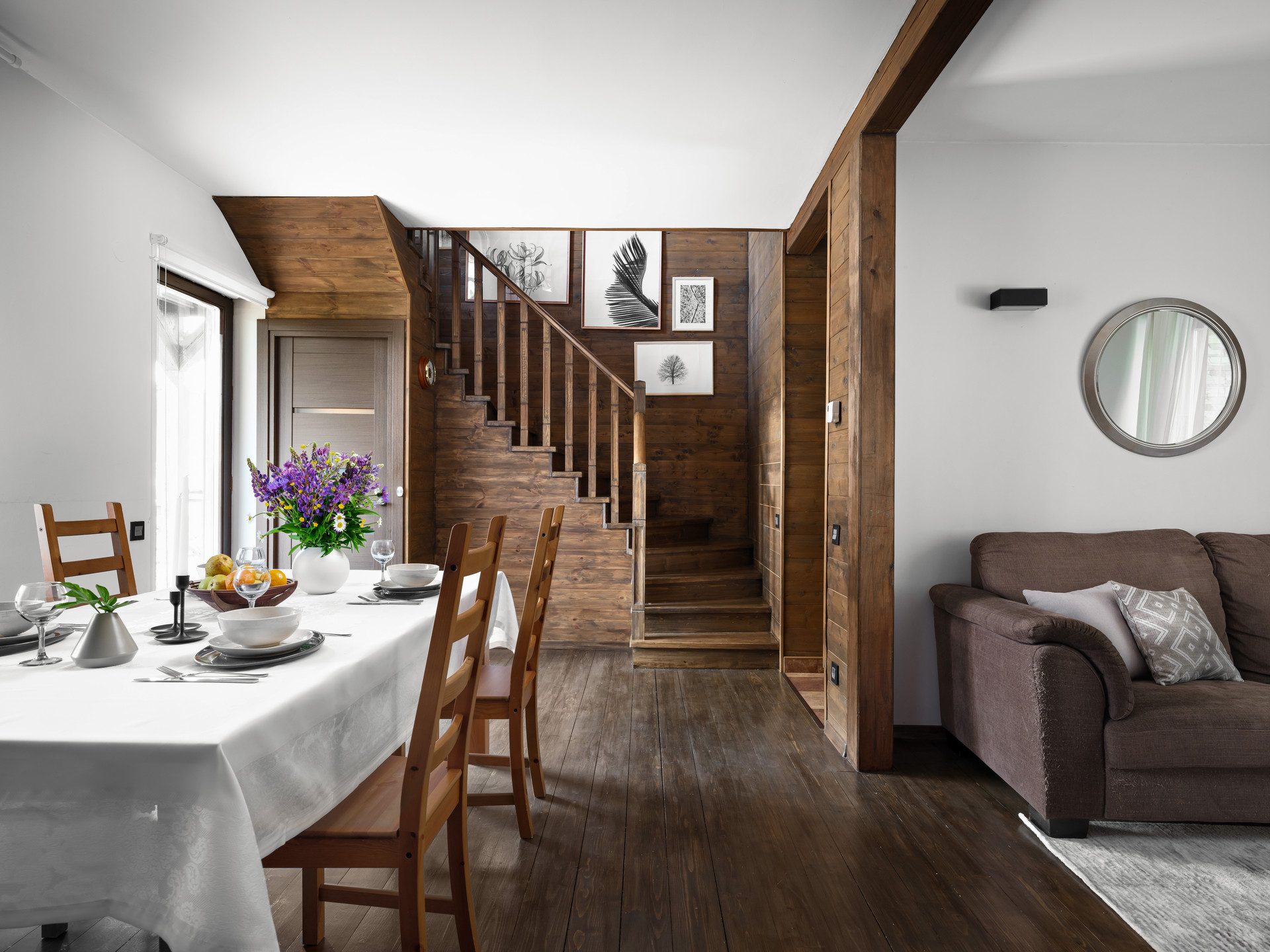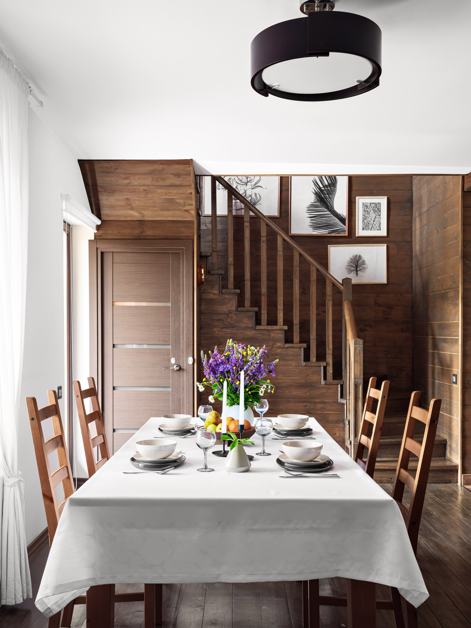 Просторный двухэтажный шале в дали от городской суеты. Участок расположен в 16 км от Москвы по Дмитровскому или Ленинградскому шоссе (в пригороде Лобни).