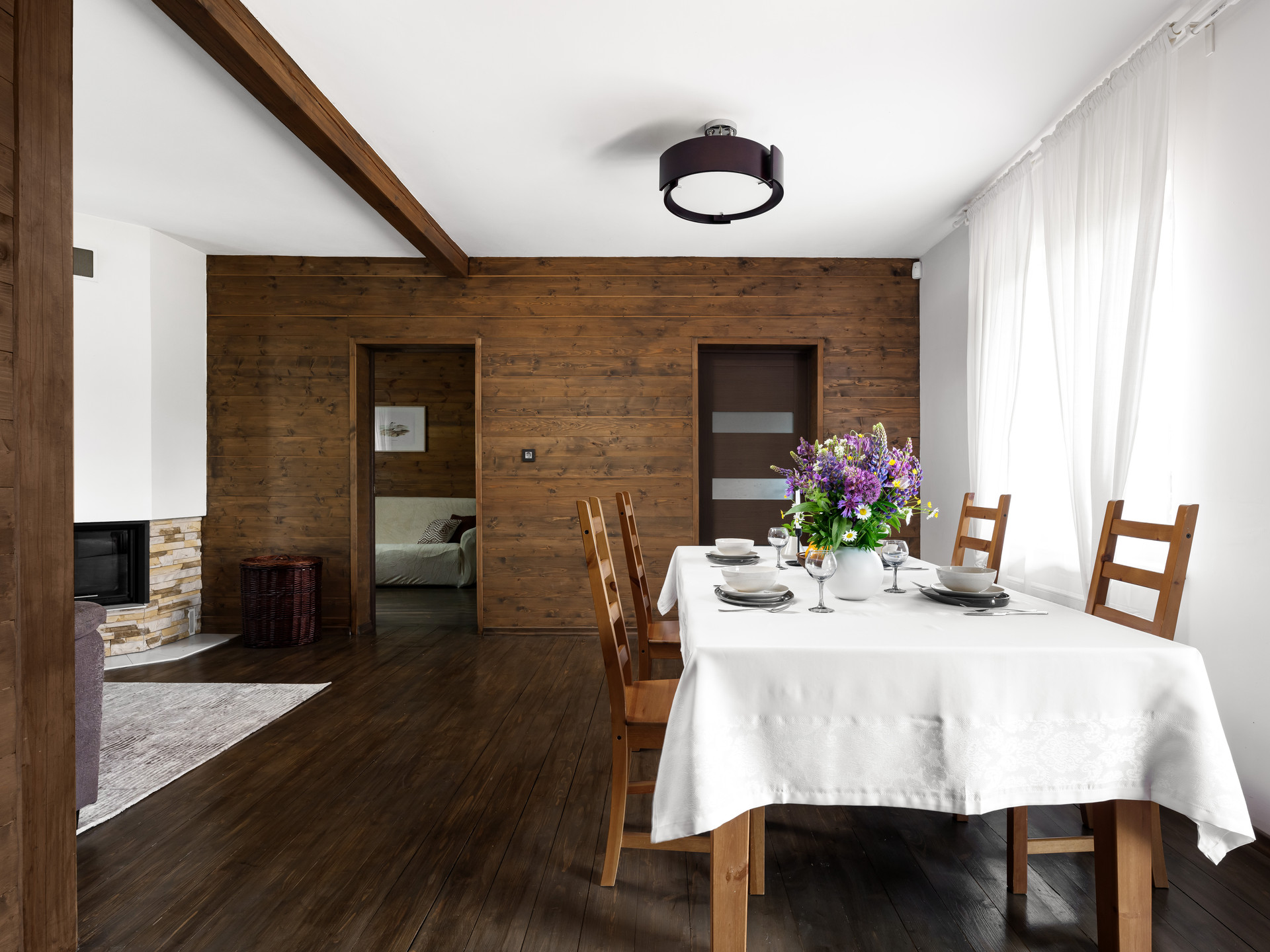 Гостиная, 5 спален, 2 санузла (один на перовом этаже и один на втором этаже). На первом этаже просторная гостиная и гостевая, на втором этаже 4 пальни и полноценная ванная комната.