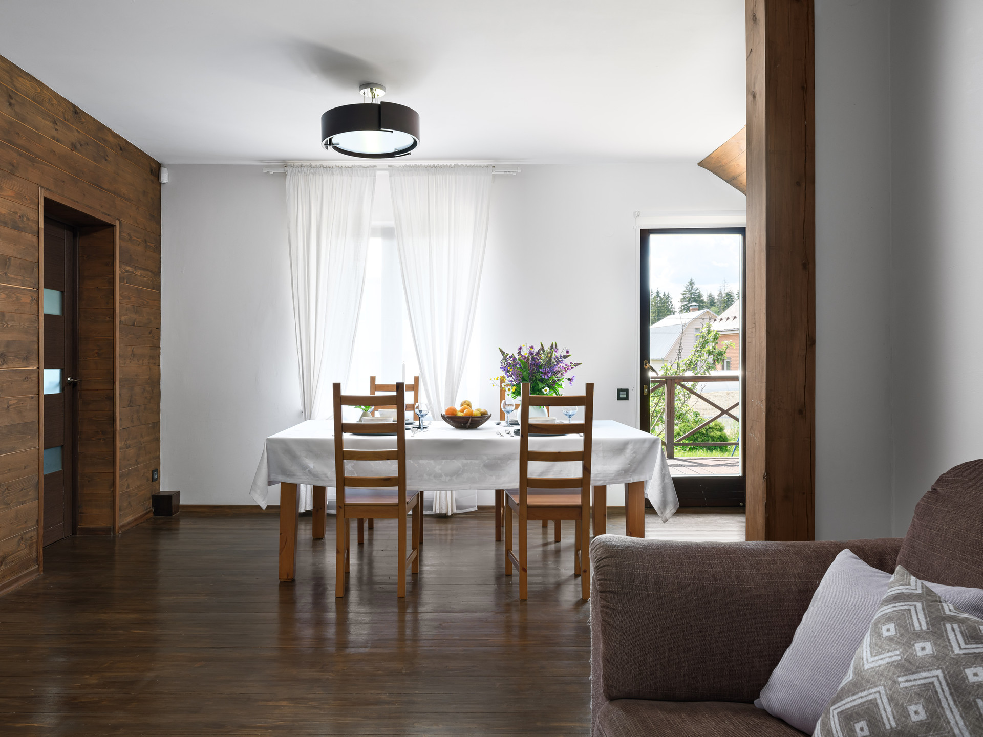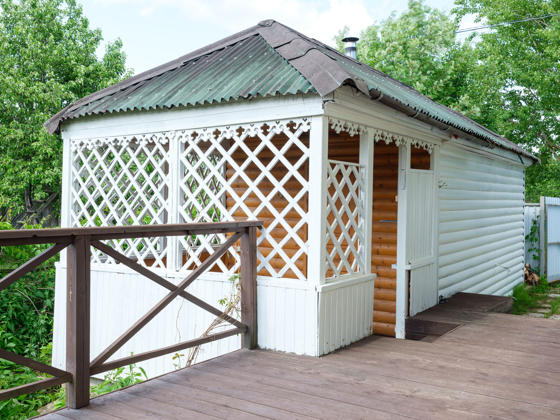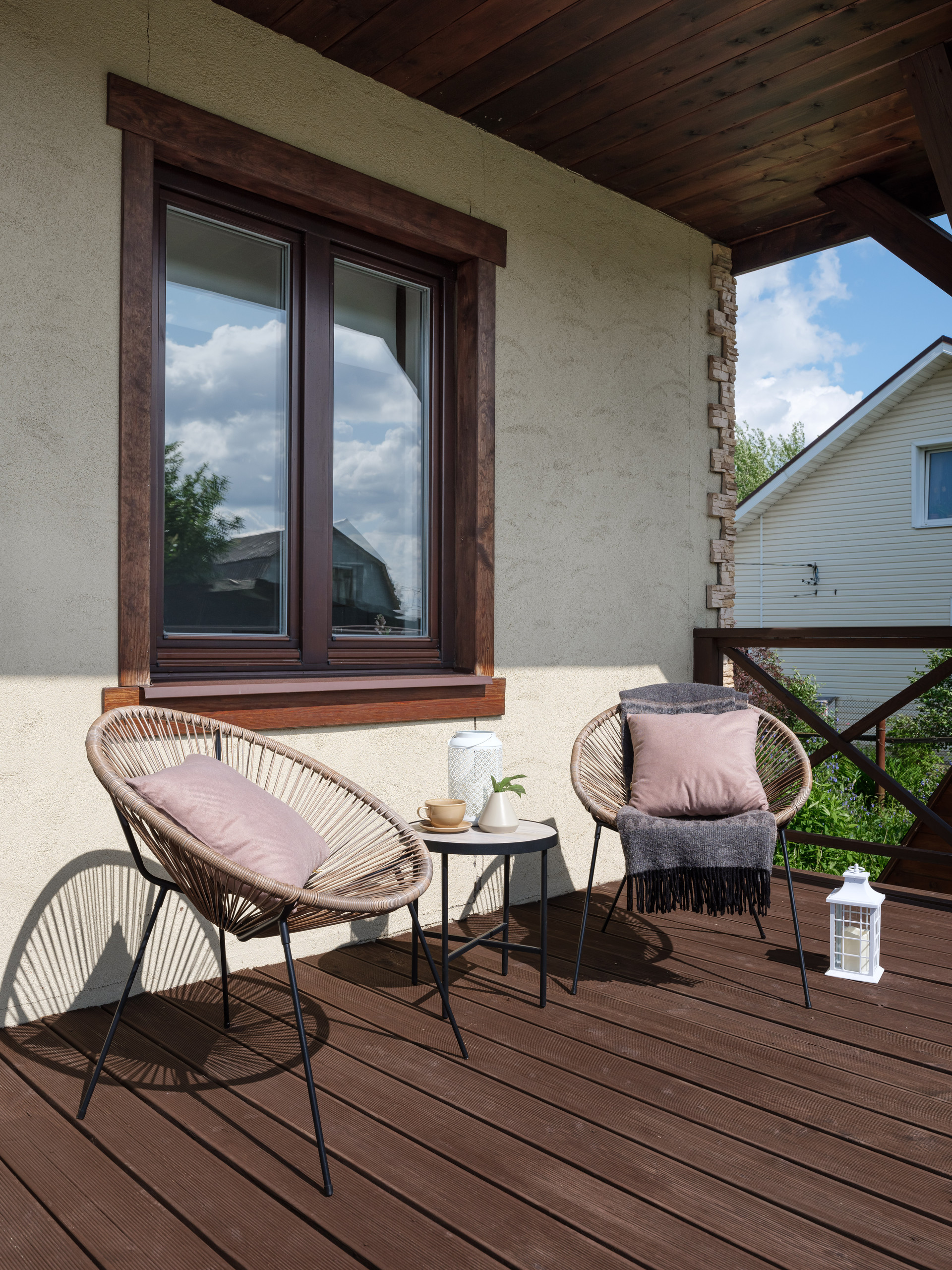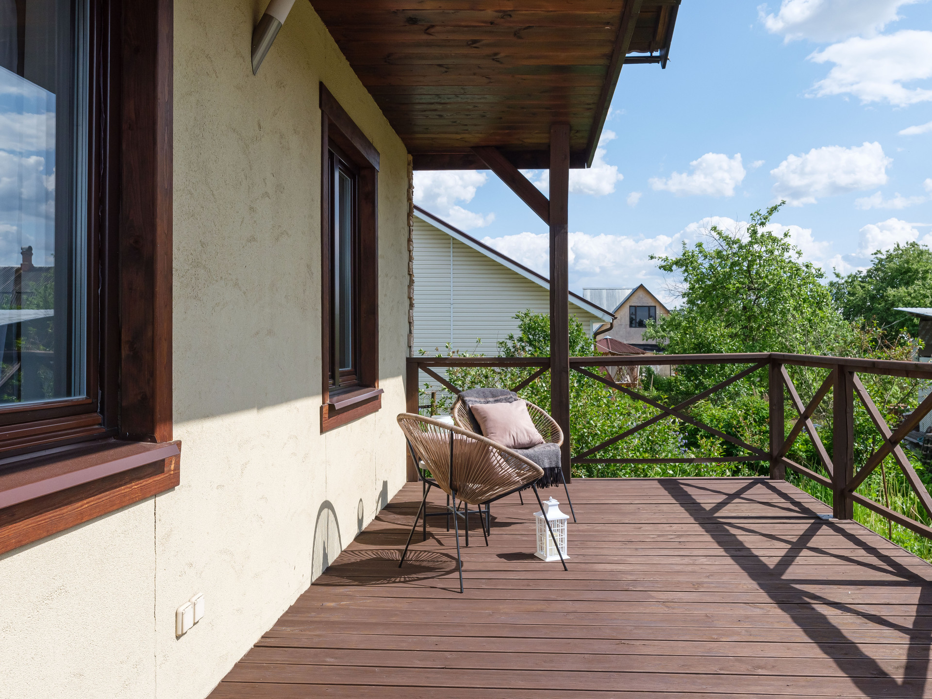 Большая веранда с навесом для теплых вечеров в кругу семьи и друзей.