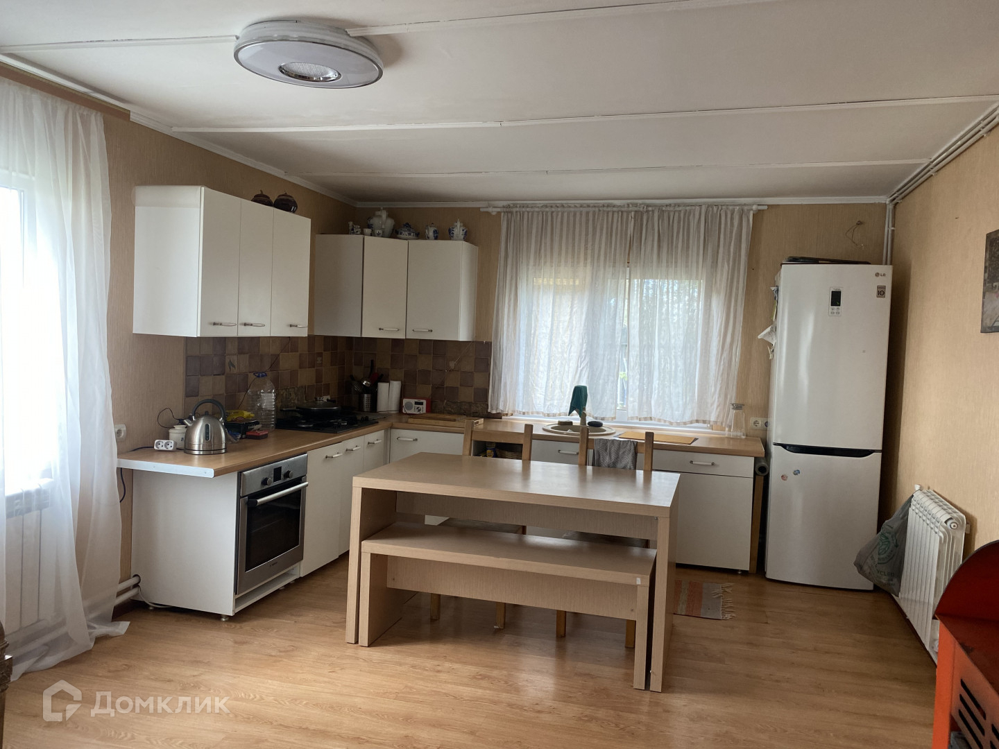 В доме на первом этаже кухня-гостиная, 1 спальня , санузел (раздельный), на втором этаже 3 спальни (12м2, 15м2 и 14м2). Есть балкон.